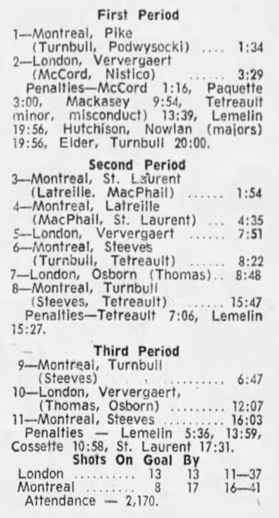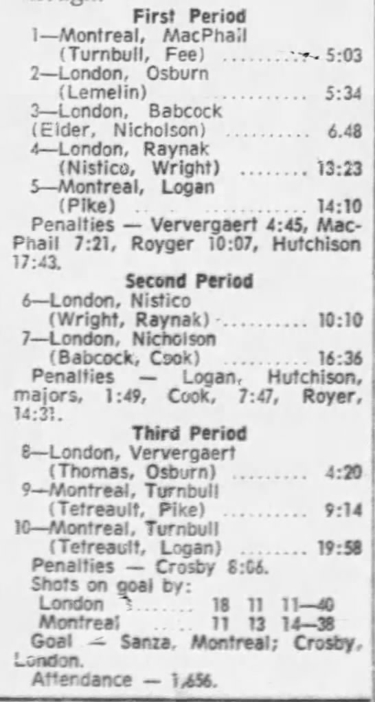 October 29 1971- Montreal @ London (6-5 London)