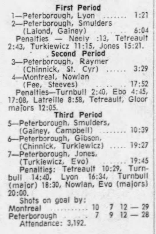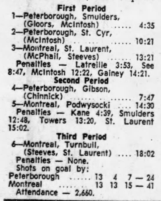 February 3 1972- Montreal @ Peterborough (6-2 Peterborough)