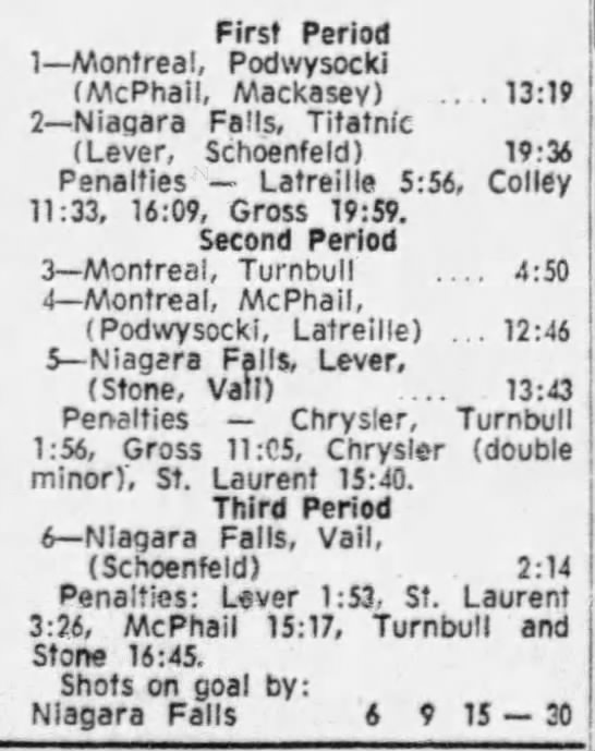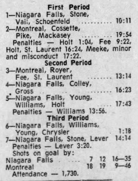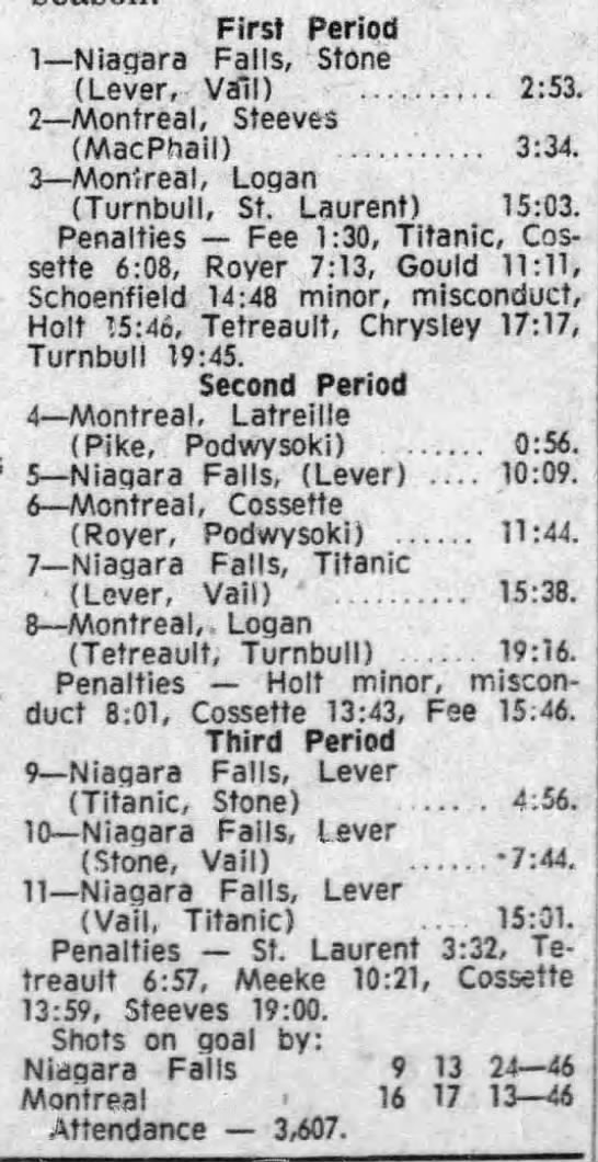 December 3 1971- Montreal @ Niagara Falls (4-3 Niagara Falls)