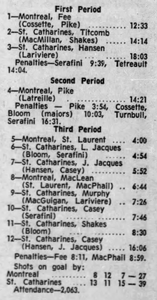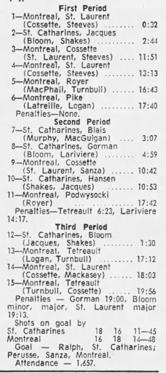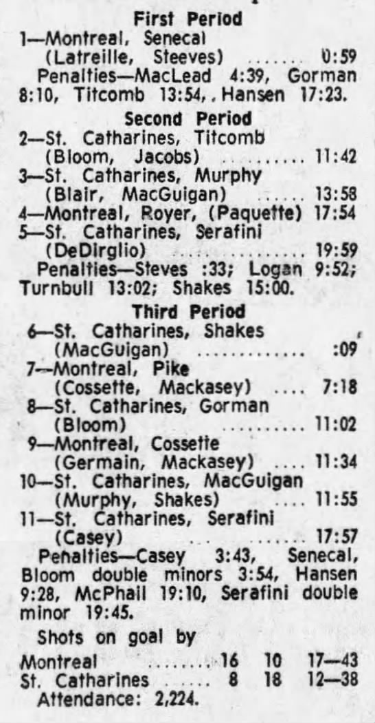 March 5 1972- St. Catharines @ Montreal