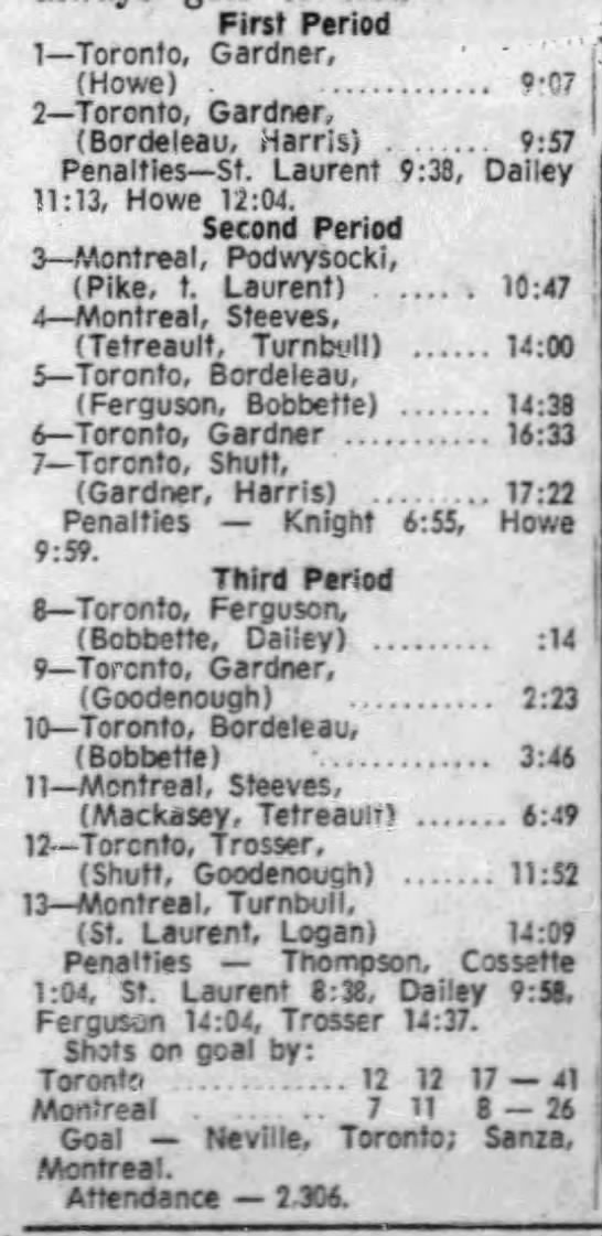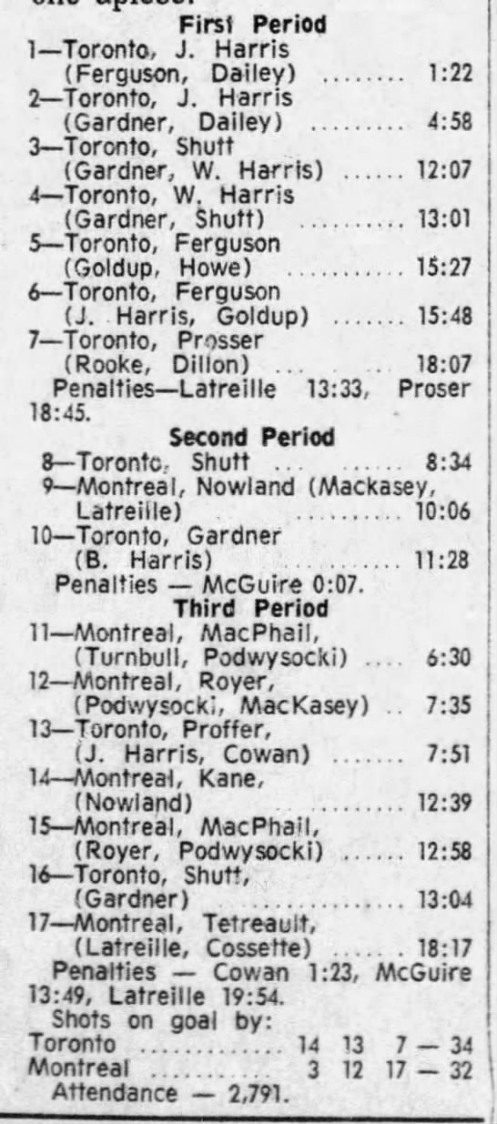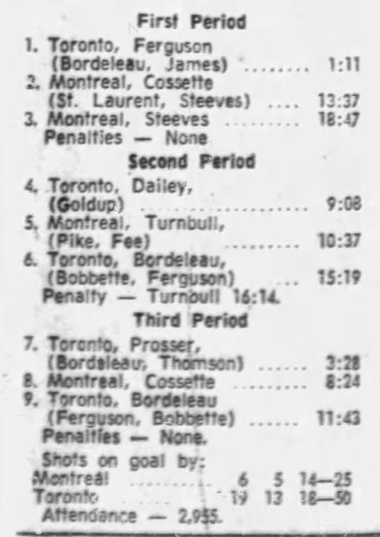 January 15 1972- Montreal @ Toronto (9-4 Toronto)