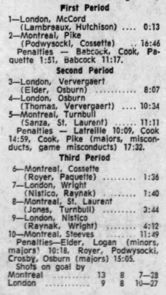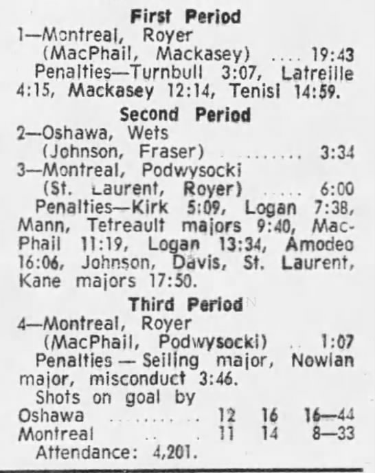 March 4 1972- Montreal @ Oshawa (7-4 Oshawa)