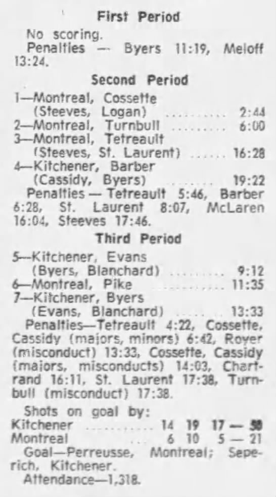 January 23 1972- Kitchener @ Montreal (5-4 Kitchener)