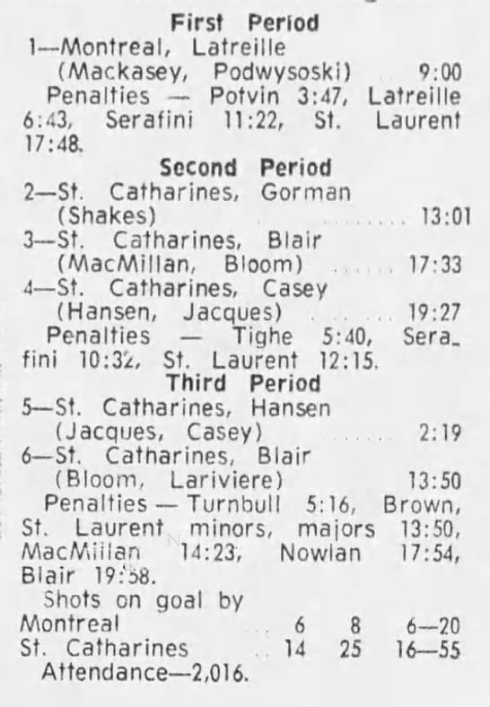 January 21 1972- St. Catharines @ Montreal (6-2 St. Catharines)