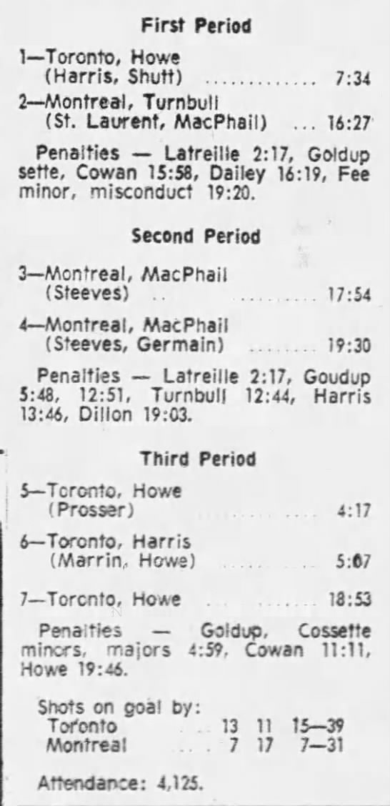 February 27 1972- Toronto @ Montreal