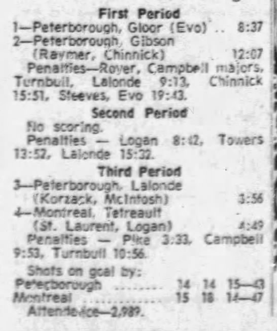 March 2 1972- Montreal @ Peterborough (11-1 Peterborough)