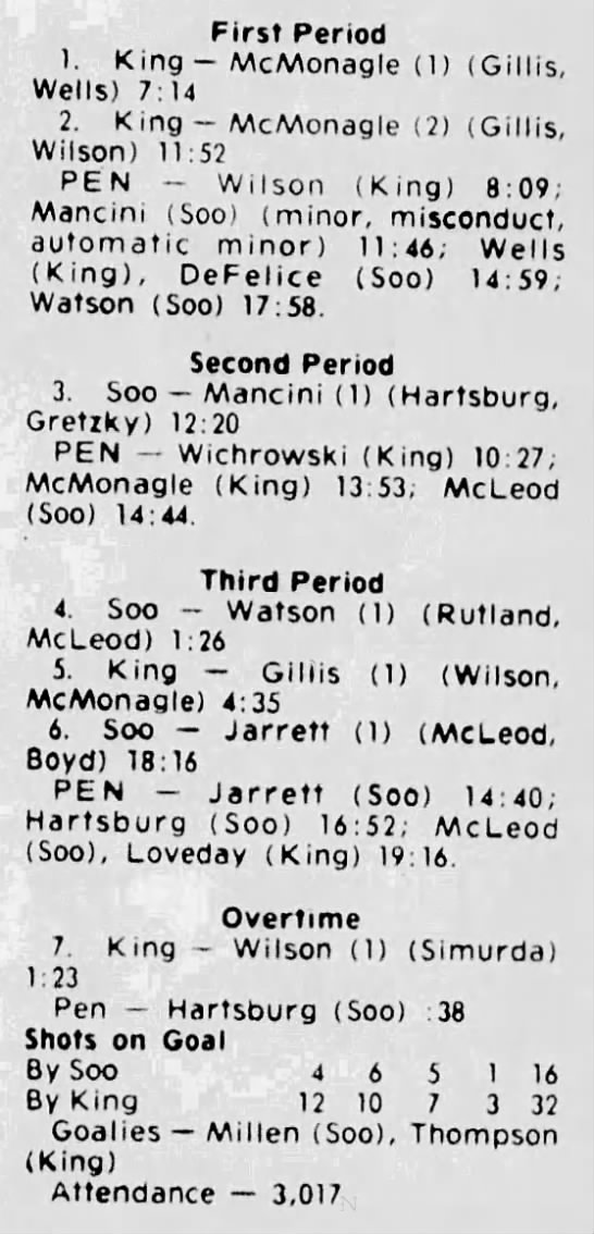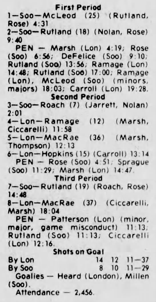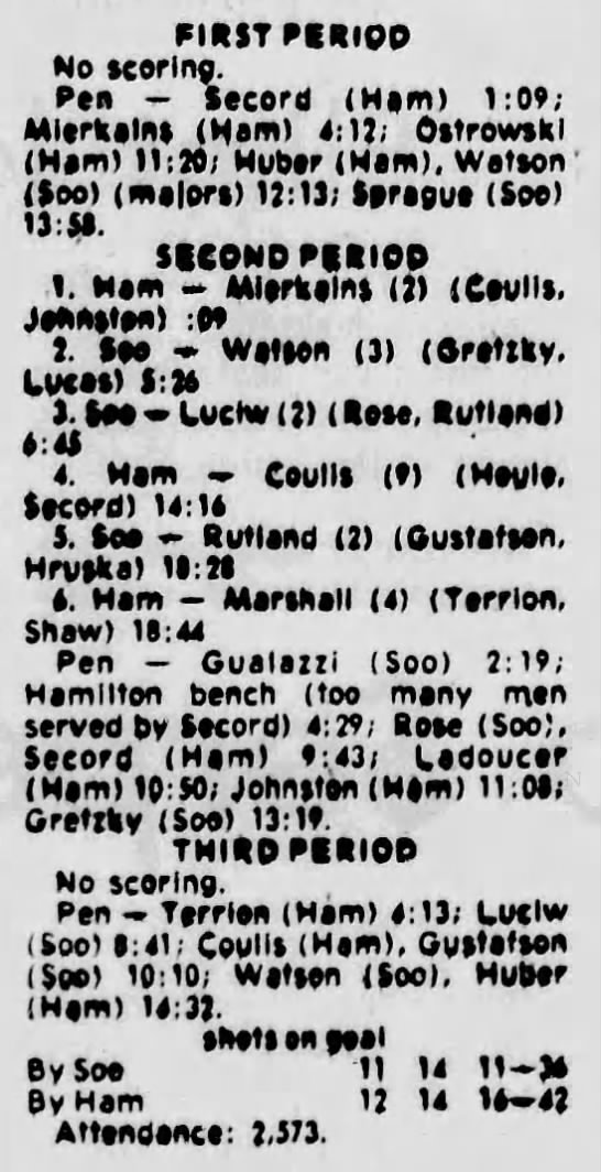 February 26 1978- Soo @ Hamilton (3-2 Soo)