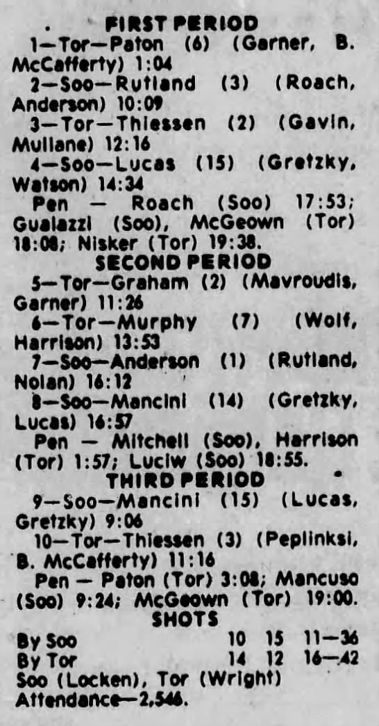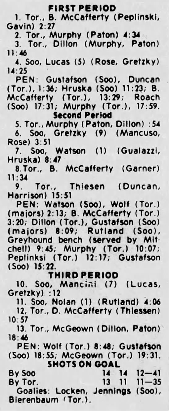 March 5 1978- Soo @ Toronto (3-1 Soo)