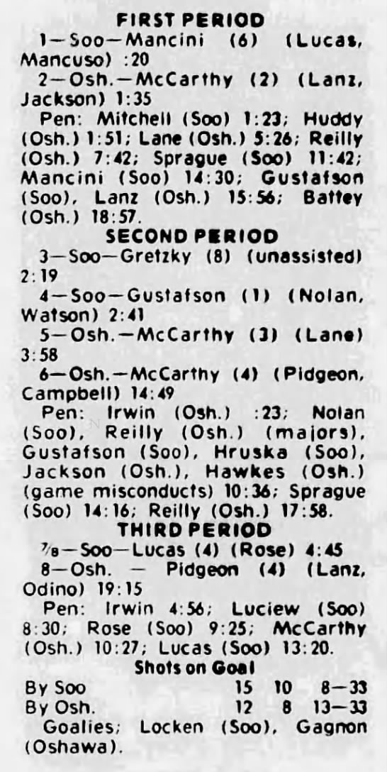 November 26 1977- Soo @ Oshawa (6-4 Soo)