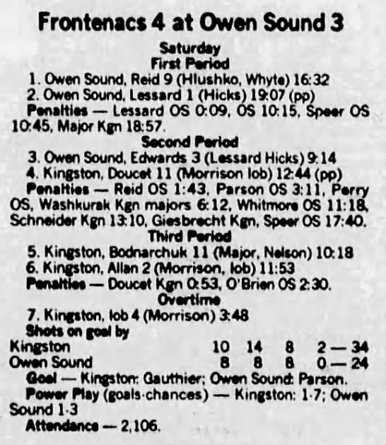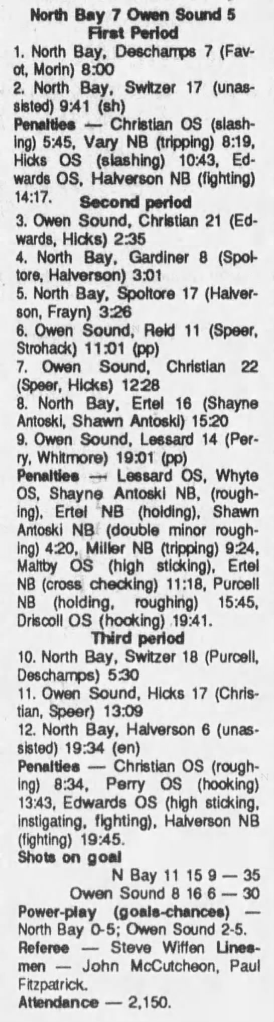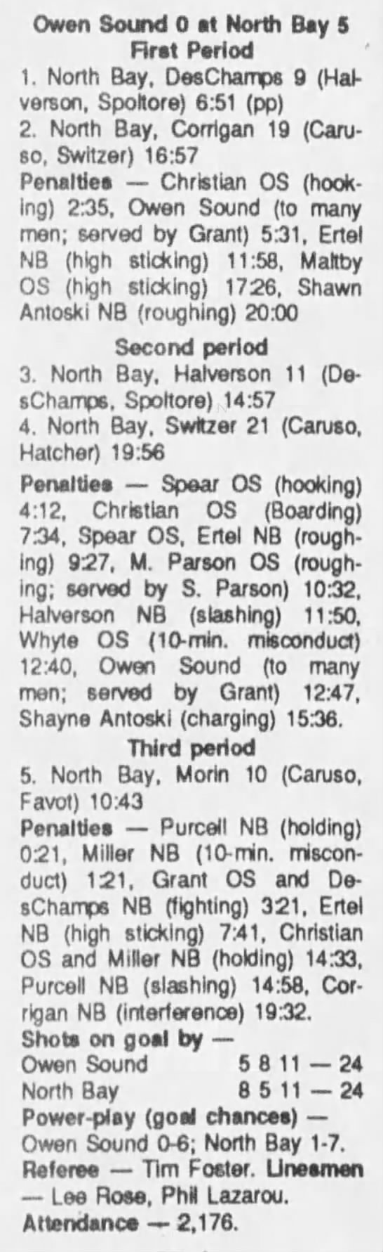 October 1 1989- Owen Sound @ North Bay (7-6 North Bay)