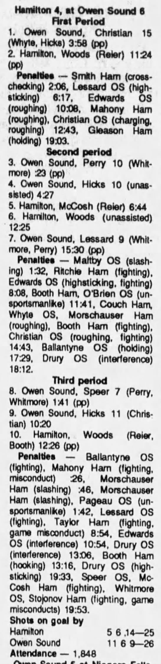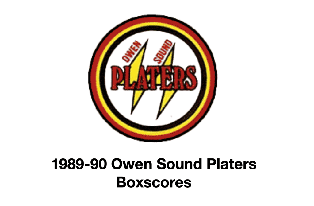 Here are the boxscores from the 1989-90 Owen Sound Platers season. Every game from that season is here (56/78 boxscores). If you have any games that are missing from any other team or season, please send them my way.