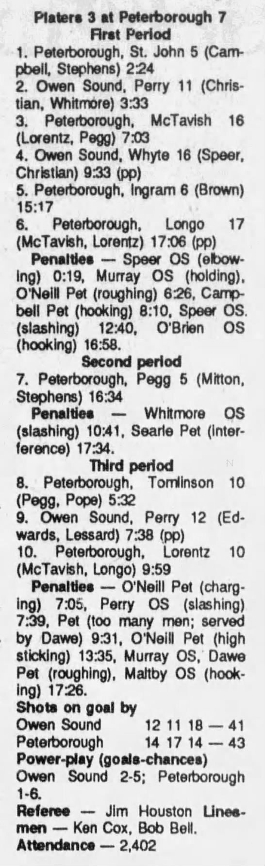 February 22 1990- Owen Sound @ Peterborough (7-5 Peterborough)