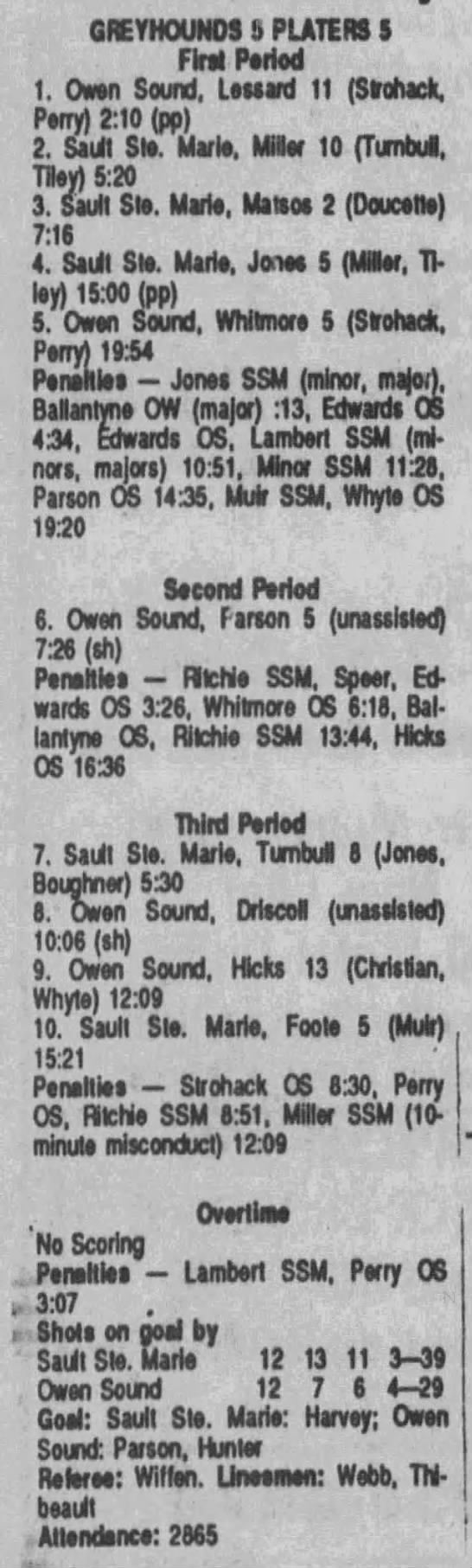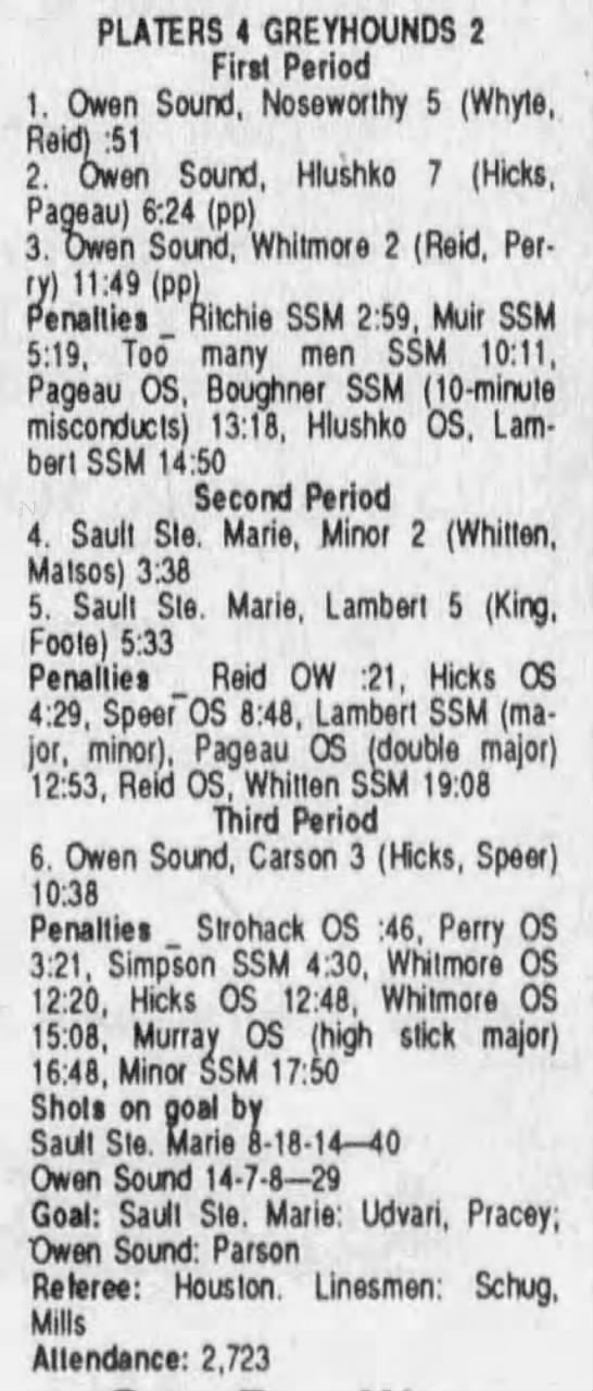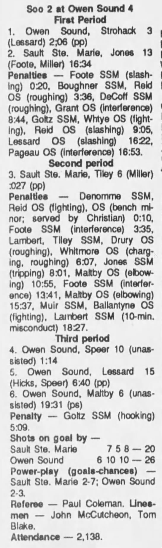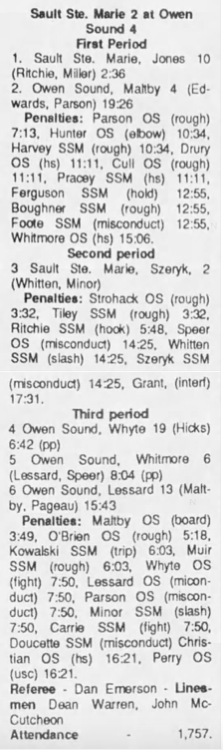 October 14 1989- Soo @ Owen Sound (5-3 Owen Sound)
