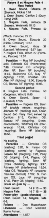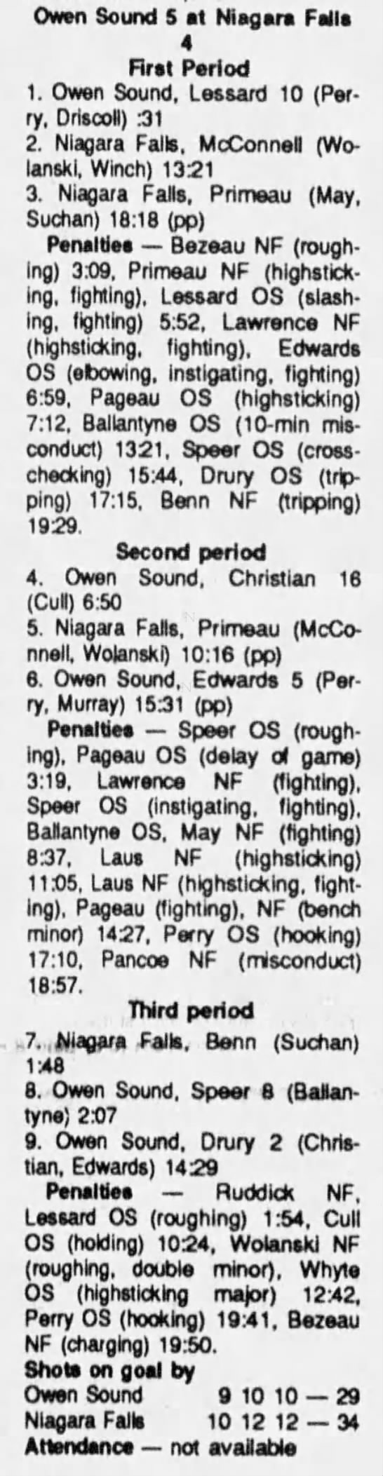 October 4 1989- Niagara Falls @ Owen Sound (5-5 Tie)