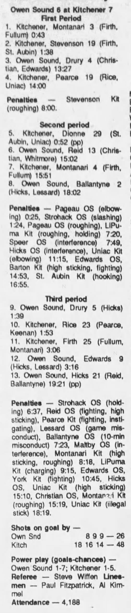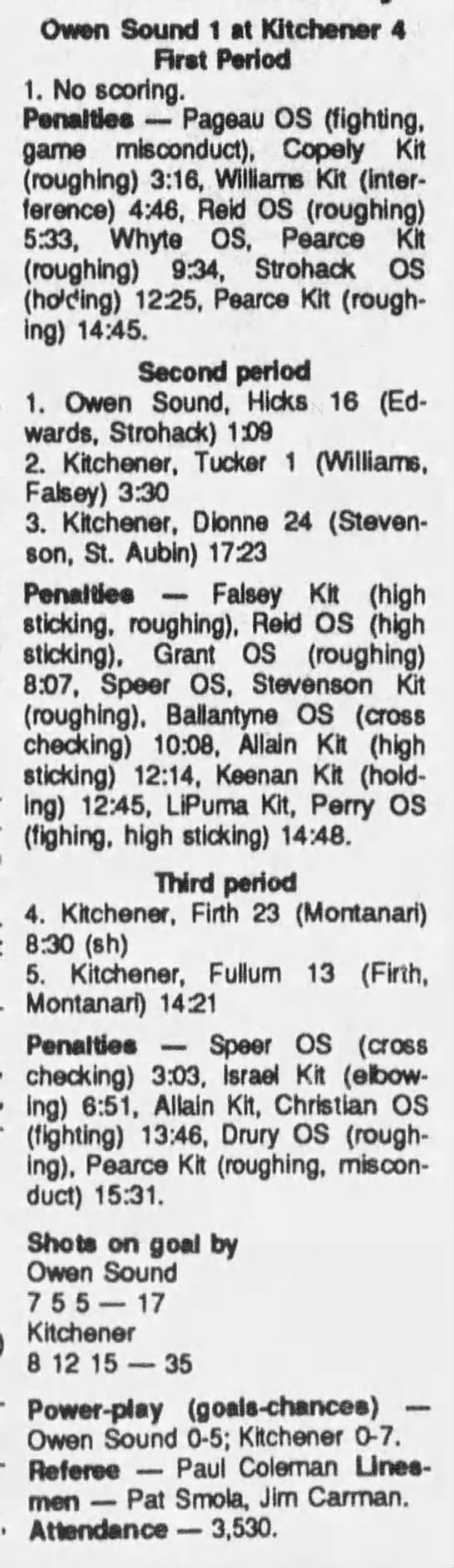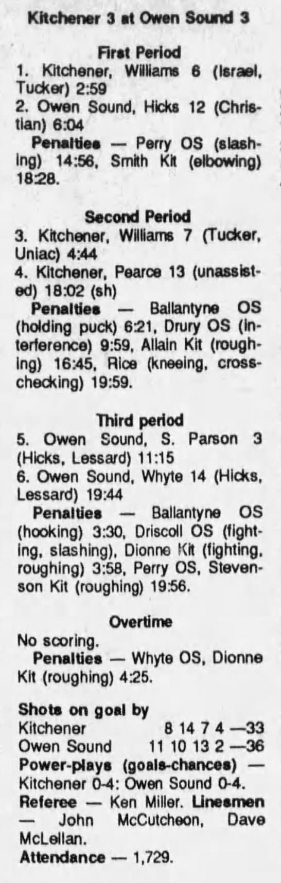 September 20 1989- Kitchener @ Owen Sound (5-4 Owen Sound)
