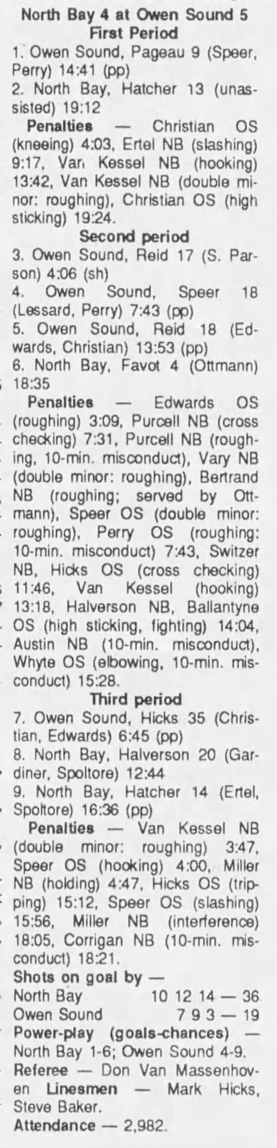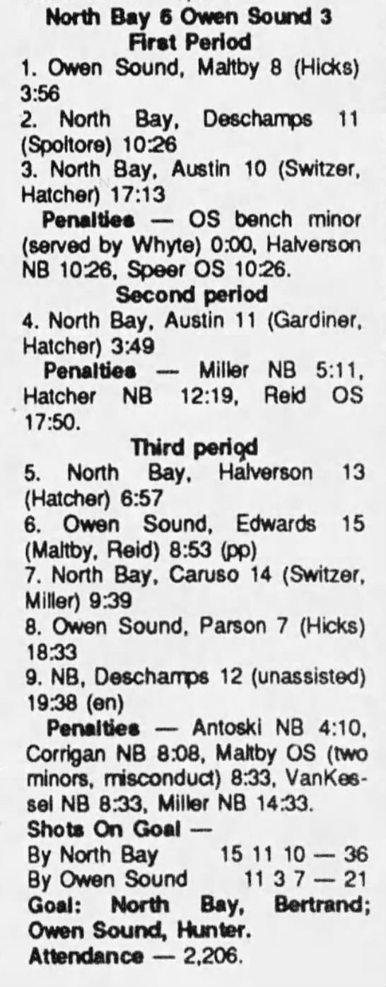 January 3 1990- North Bay @ Owen Sound