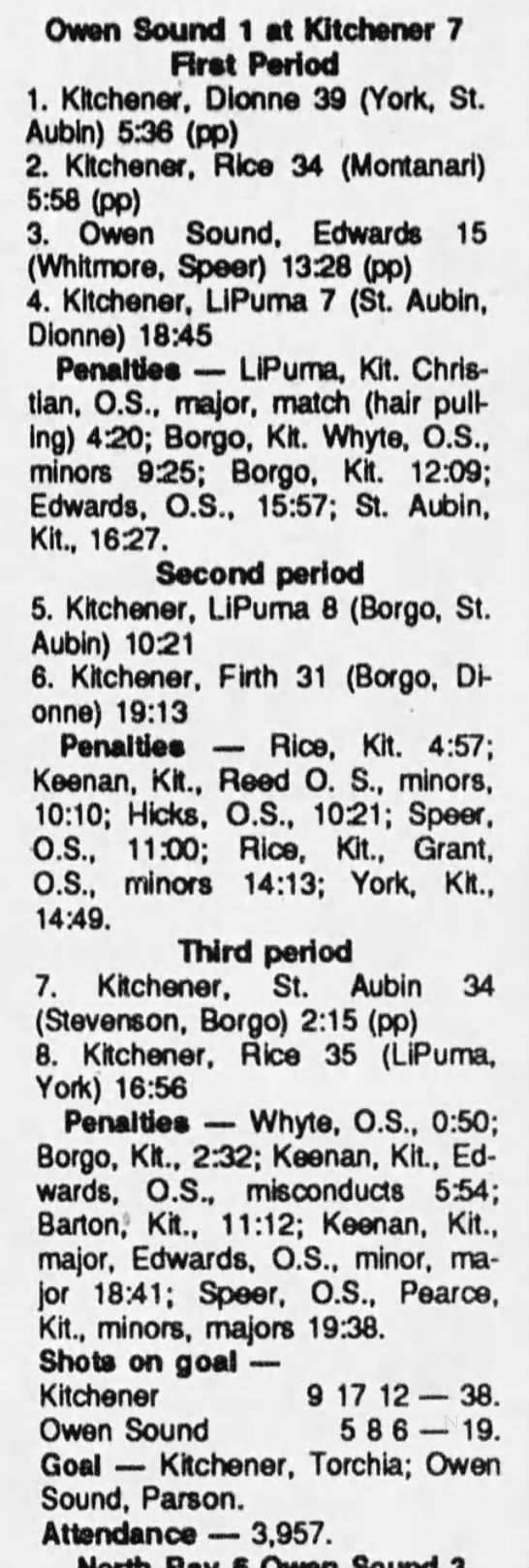 October 22 1989- Owen Sound @ Kitchener (11-2 Kitchener)
