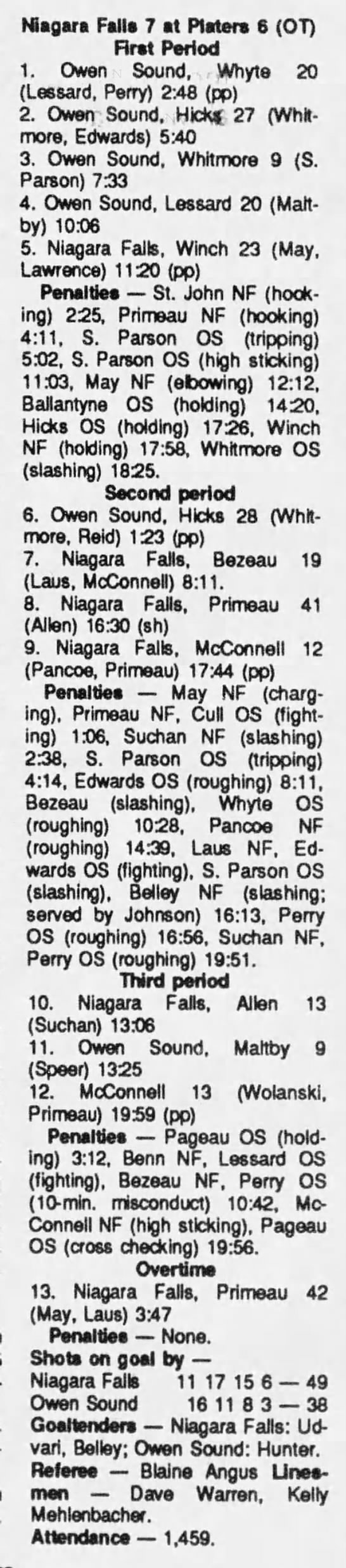 March 4 1990- Owen Sound @ Niagara Falls