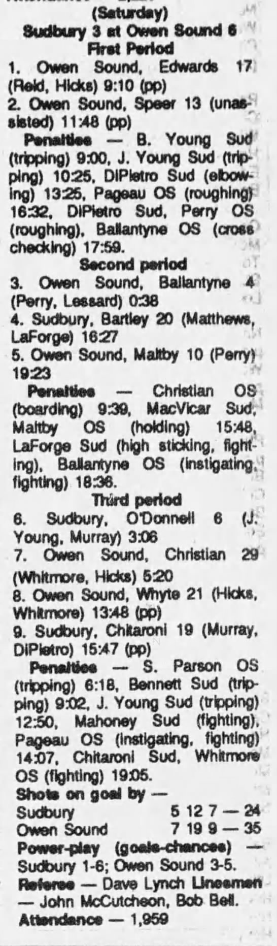 November 18 1989- Sudbury @ Owen Sound (4-1 Owen Sound)