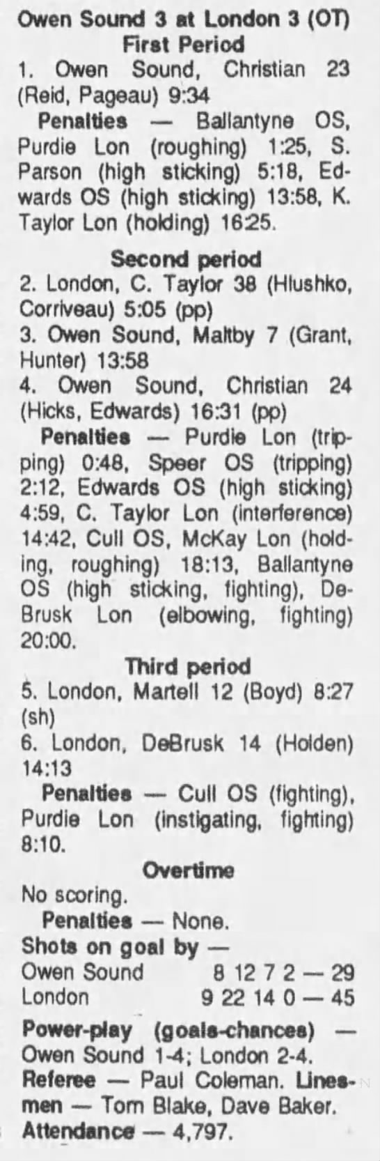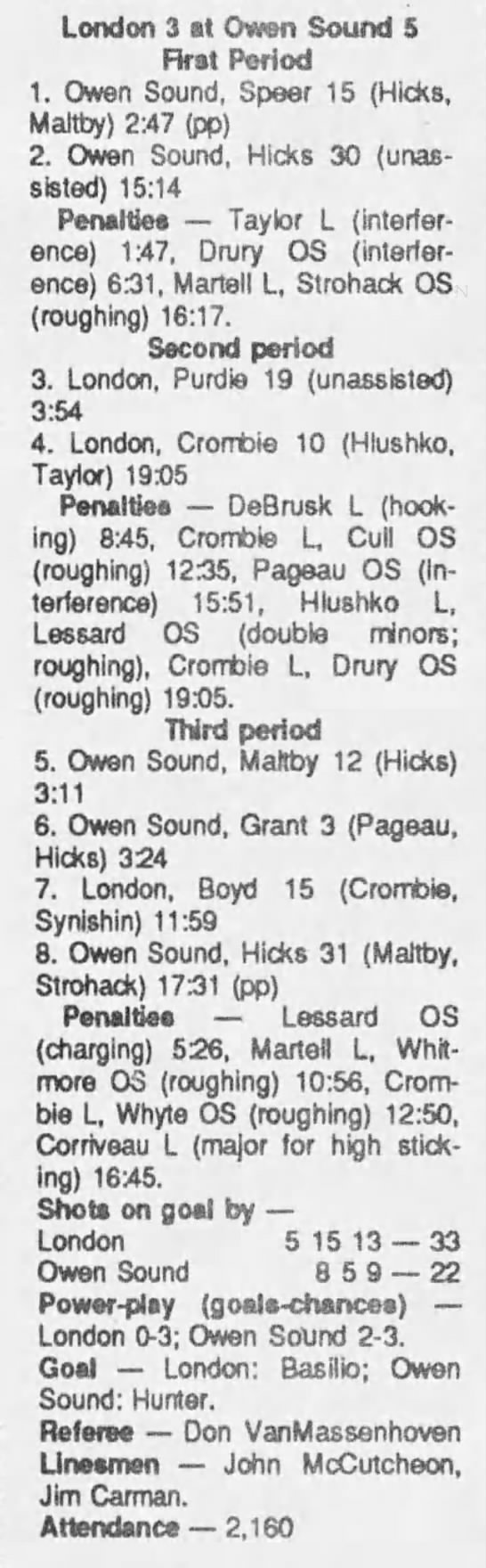 November 25 1989- London @ Owen Sound (7-5 Owen Sound)