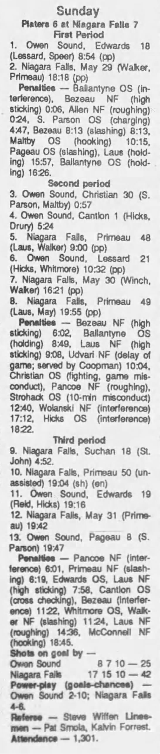February 25 1990- Owen Sound @ Niagara Falls