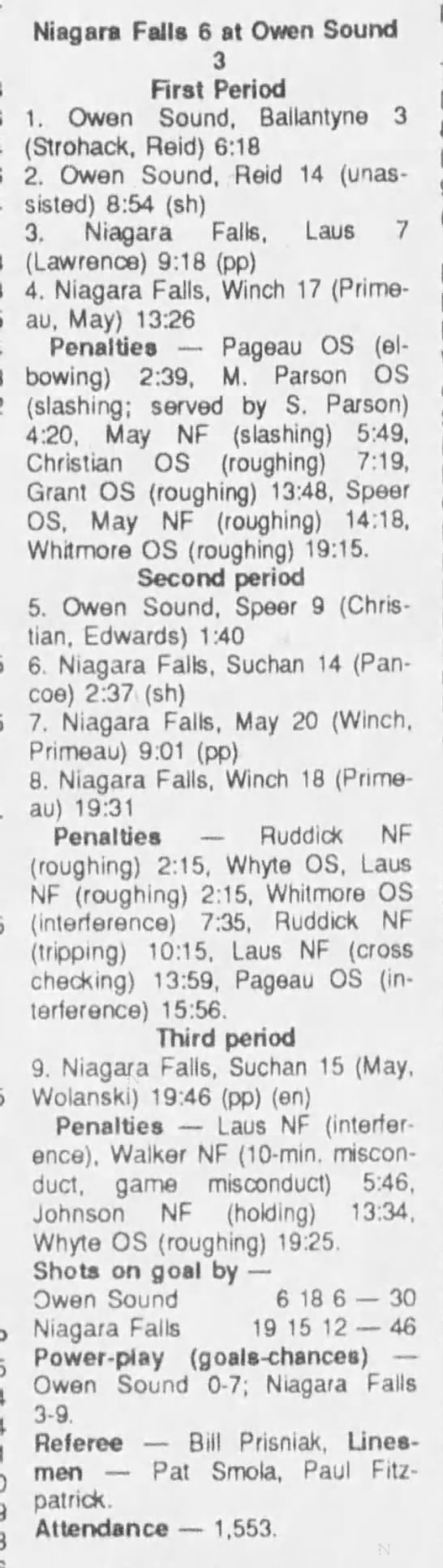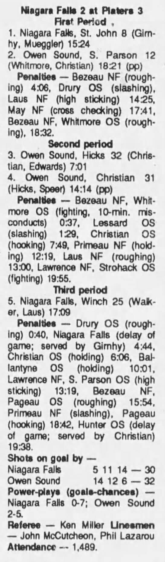 December 3 1989- Owen Sound @ Niagara Falls