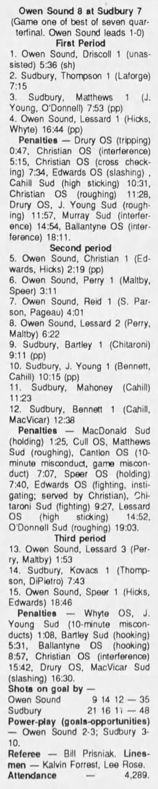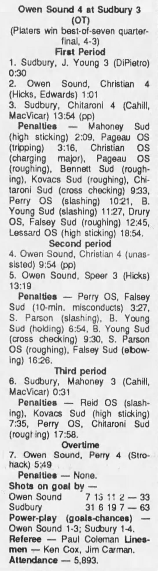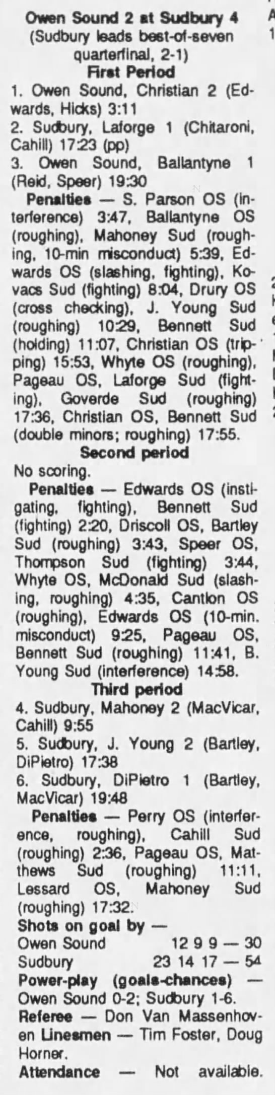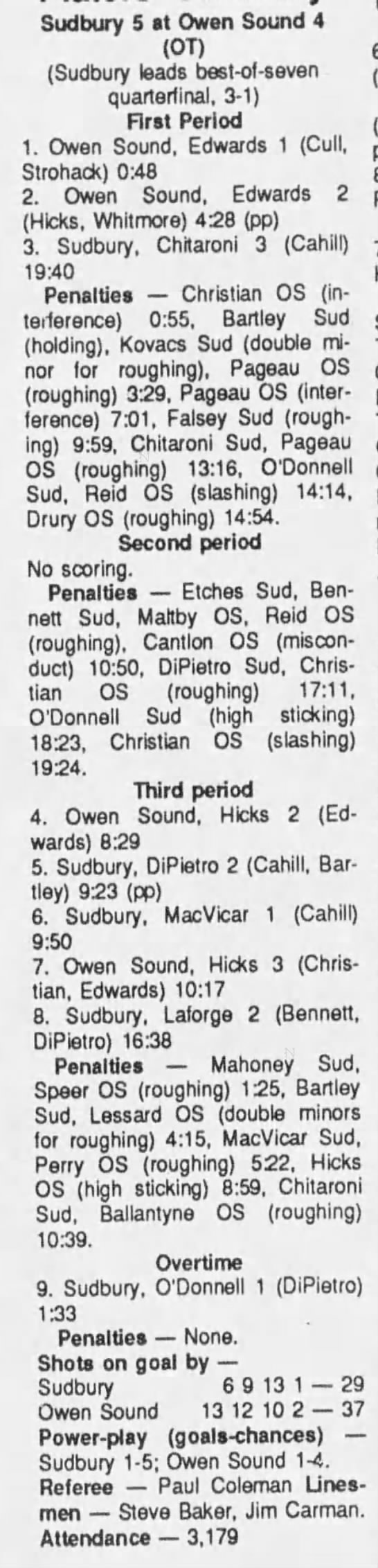 Game 4- March 24 1990- Sudbury @ Owen Sound