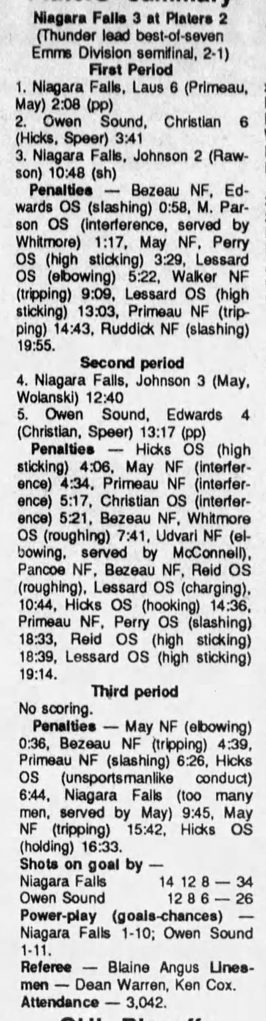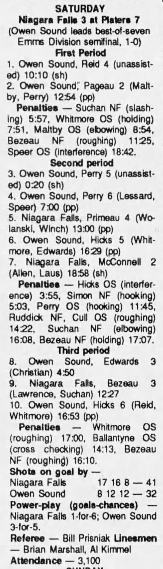 Game 3- April 3 1990- Niagara Falls @ Owen Sound