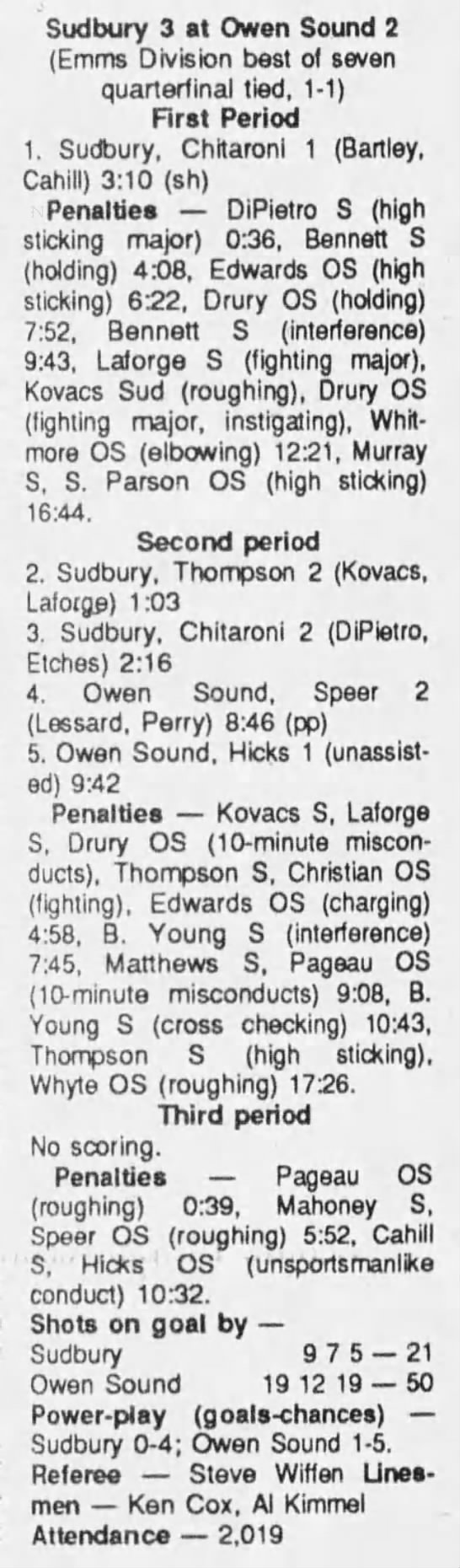 Game 2- March 20 1990- Sudbury @ Owen Sound