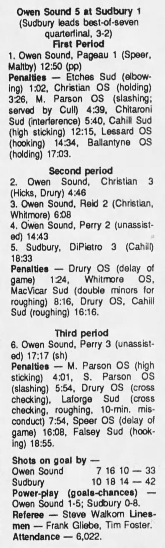 Game 6- March 27 1990- Sudbury @ Owen Sound