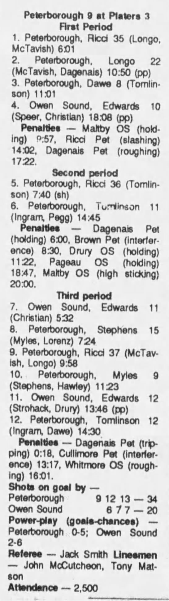 January 13 1990- Peterborough @ Owen Sound
