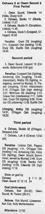 January 7 1990- Owen Sound @ Oshawa (5-4 Owen Sound)