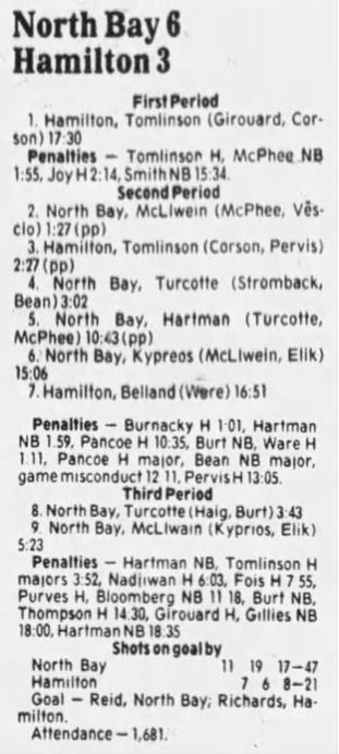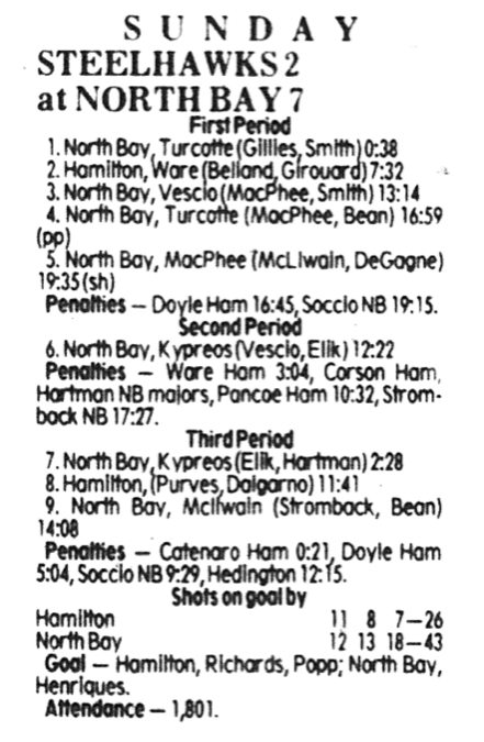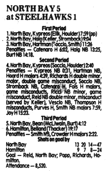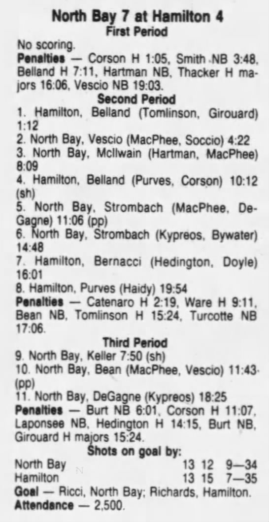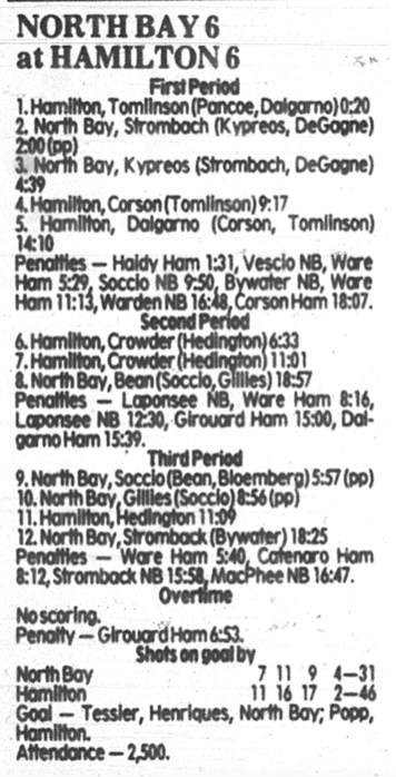 October 6 1985- Hamilton @ North Bay (6-3 North Bay)