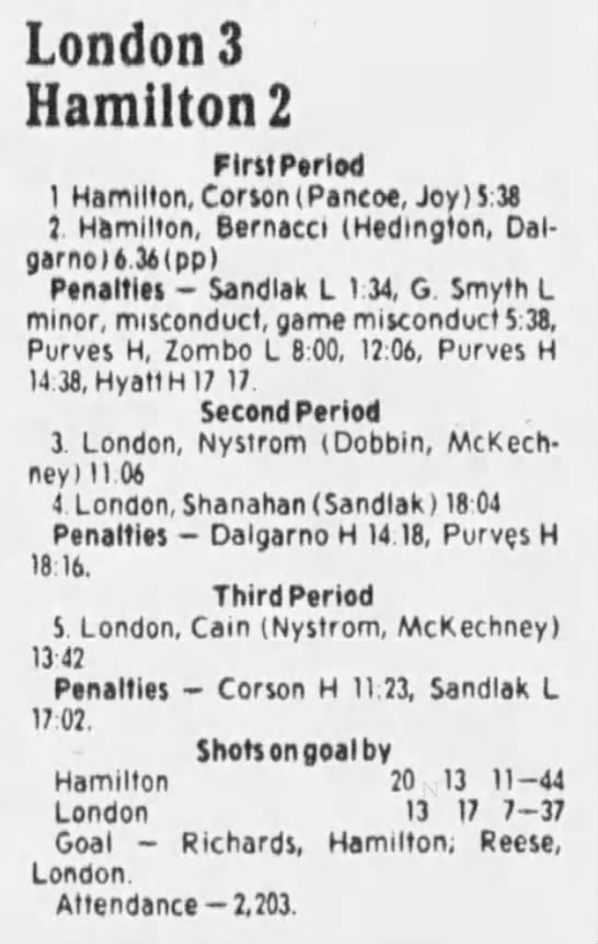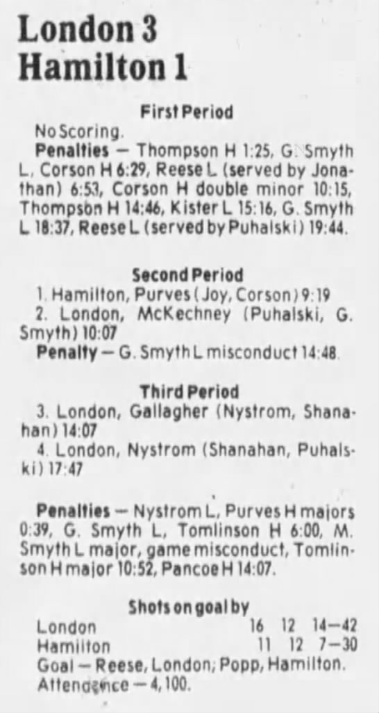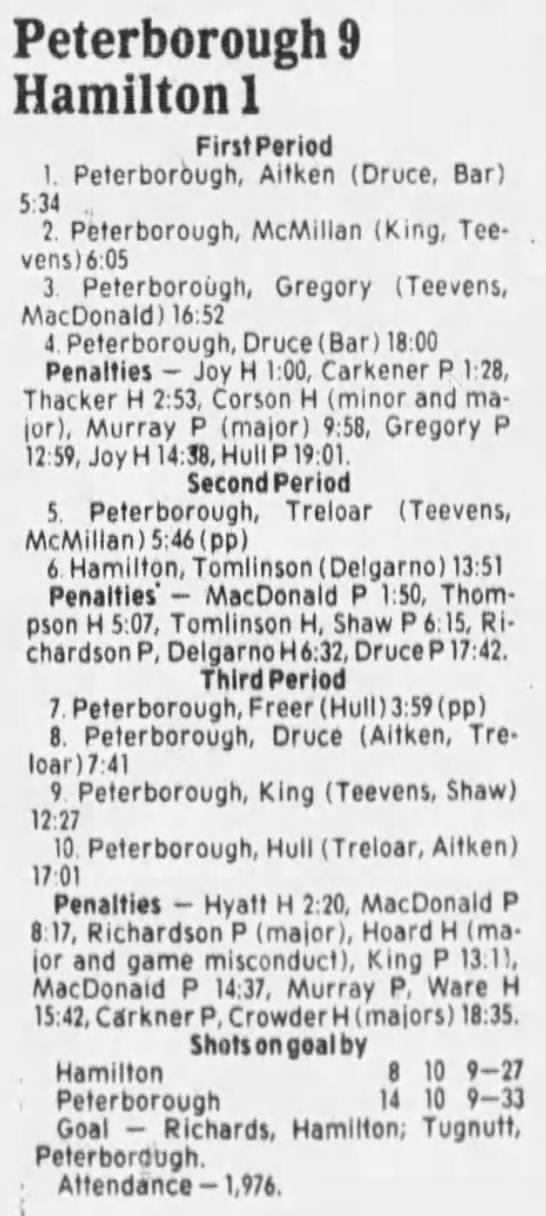 November 3 1985- Peterborough @ Hamilton (4-2 Hamilton)