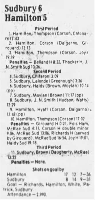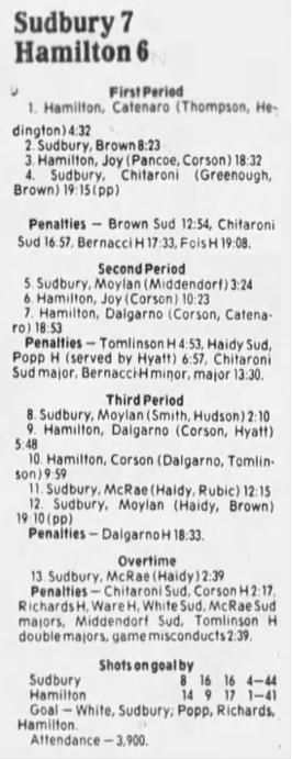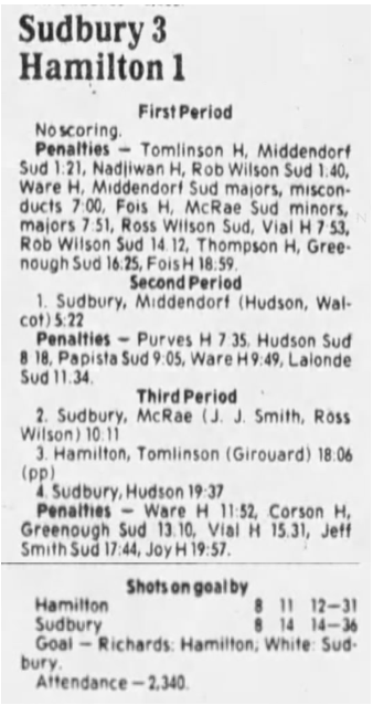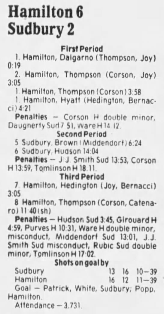 October 3 1985- Sudbury @ Hamilton (4-2 Hamilton)