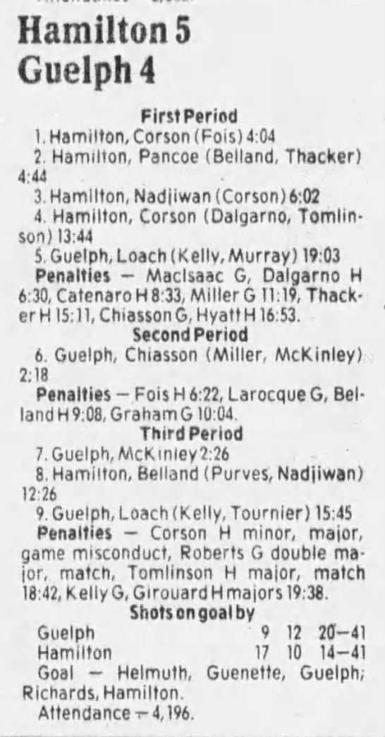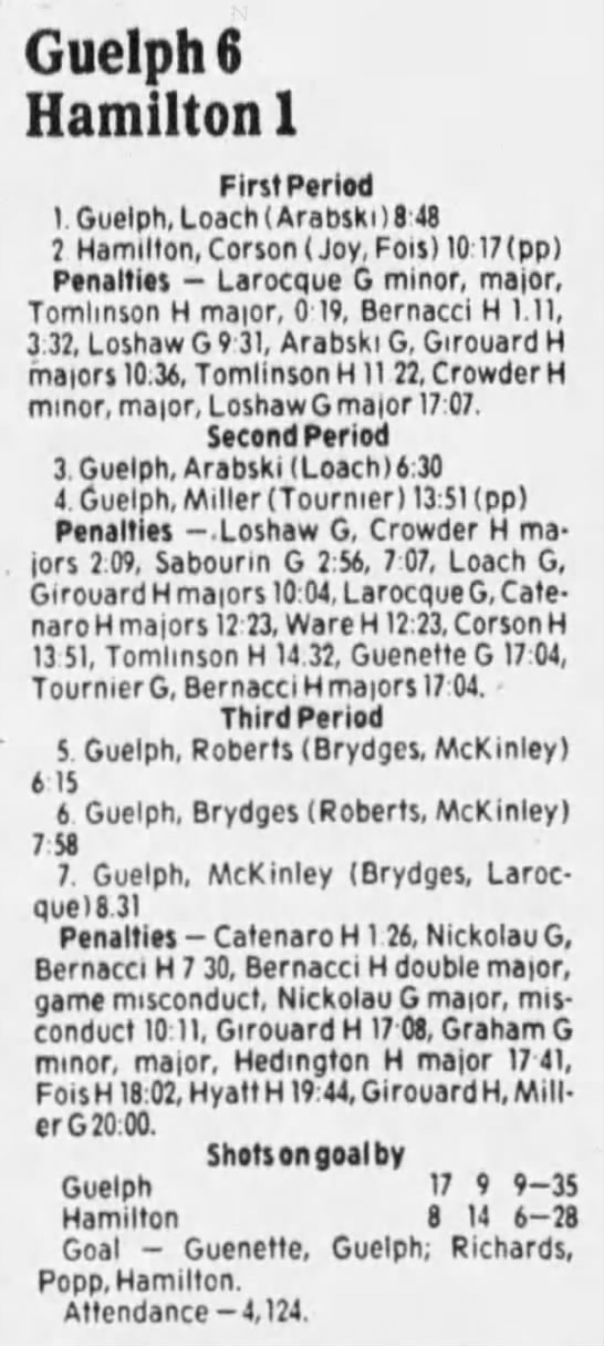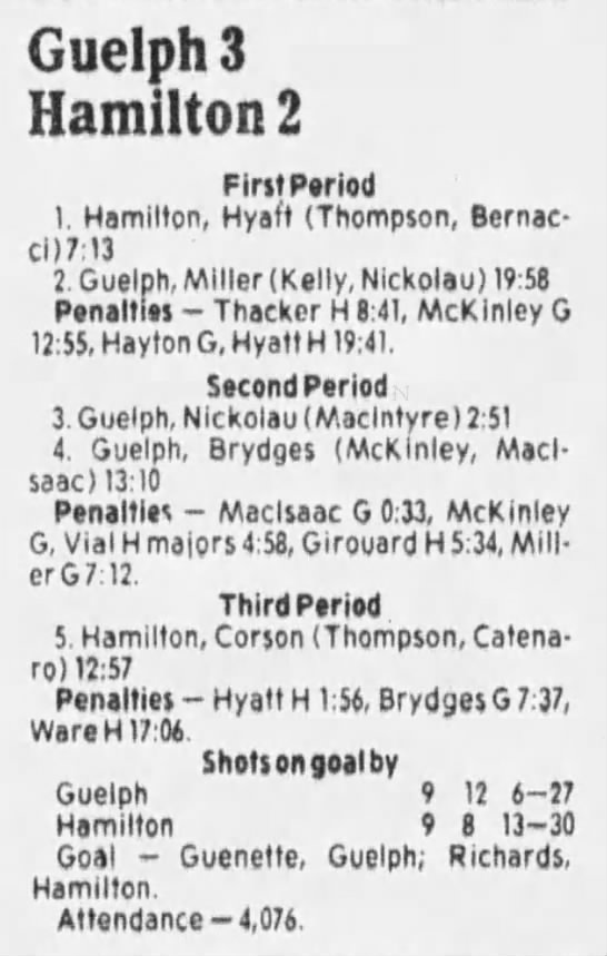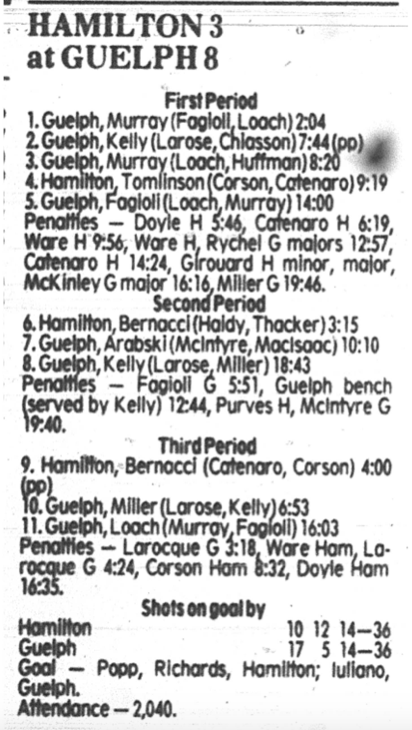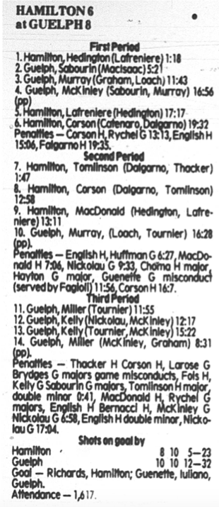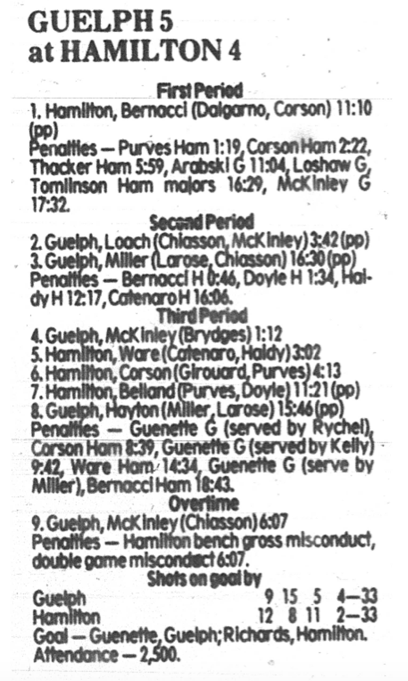 October 4 1985- Hamilton @ Guelph (7-2 Guelph)