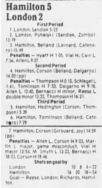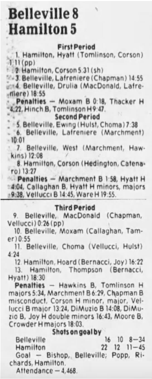October 19 1985- Hamilton @ Belleville (6-4 Belleville)