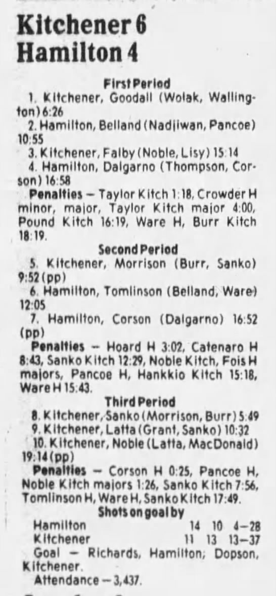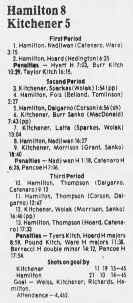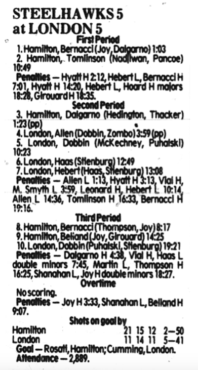 October 25 1985- Hamilton @ Kitchener (4-2 Hamilton)