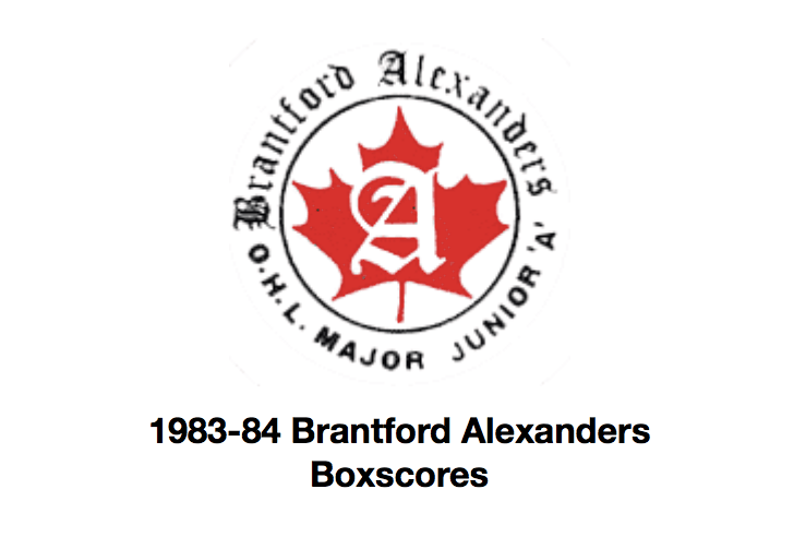 Here are the boxscores from the 1983-84 Brantford Alexanders season. Most boxscores from this season are here (73/76 boxscores). If you have any of the games that are missing, please send them my way.
