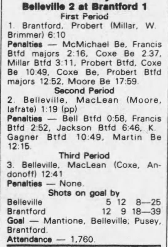 October 27 1983- Belleville @ Brantford