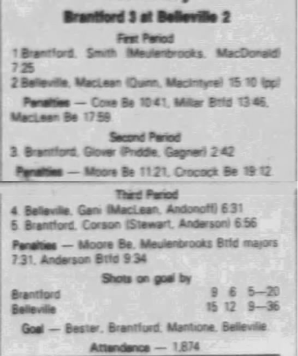 October 29 1983- Brantford @ Belleville