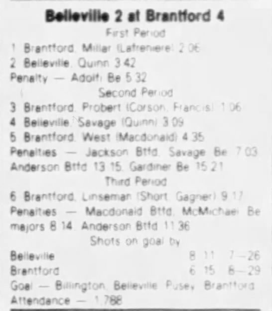 November 30 1983- Brantford @ Belleville