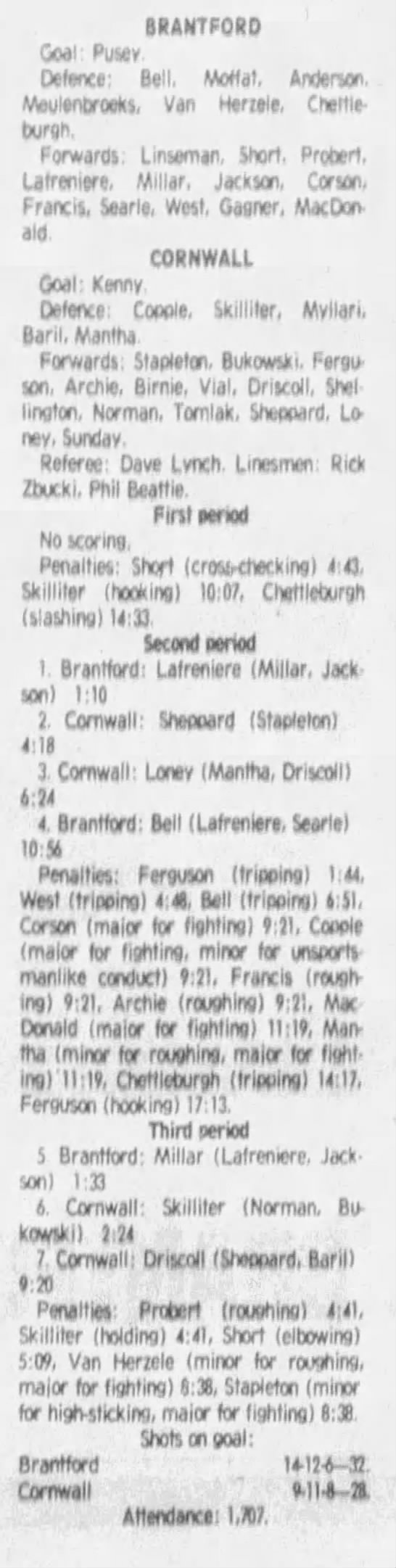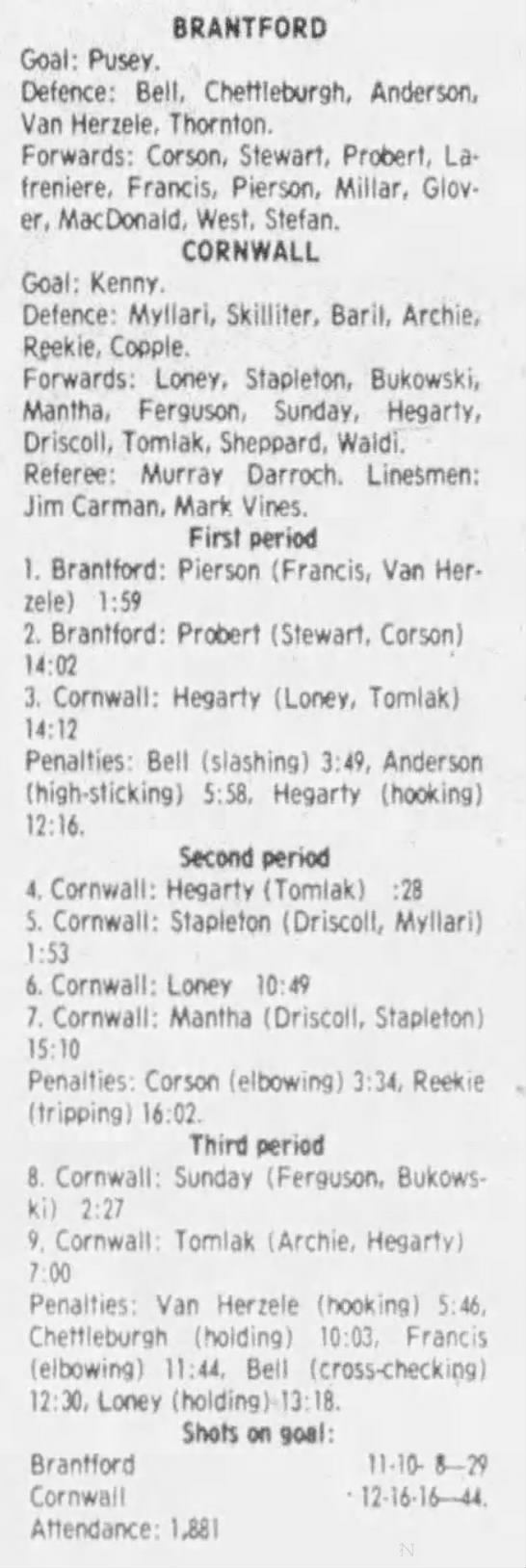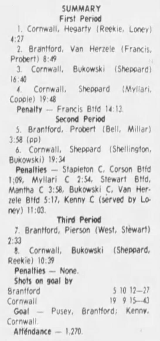 December 1 1983- Brantford @ Cornwall