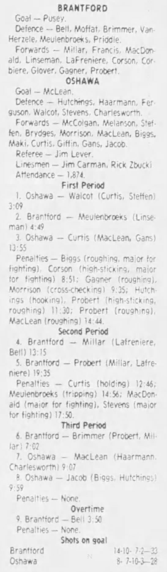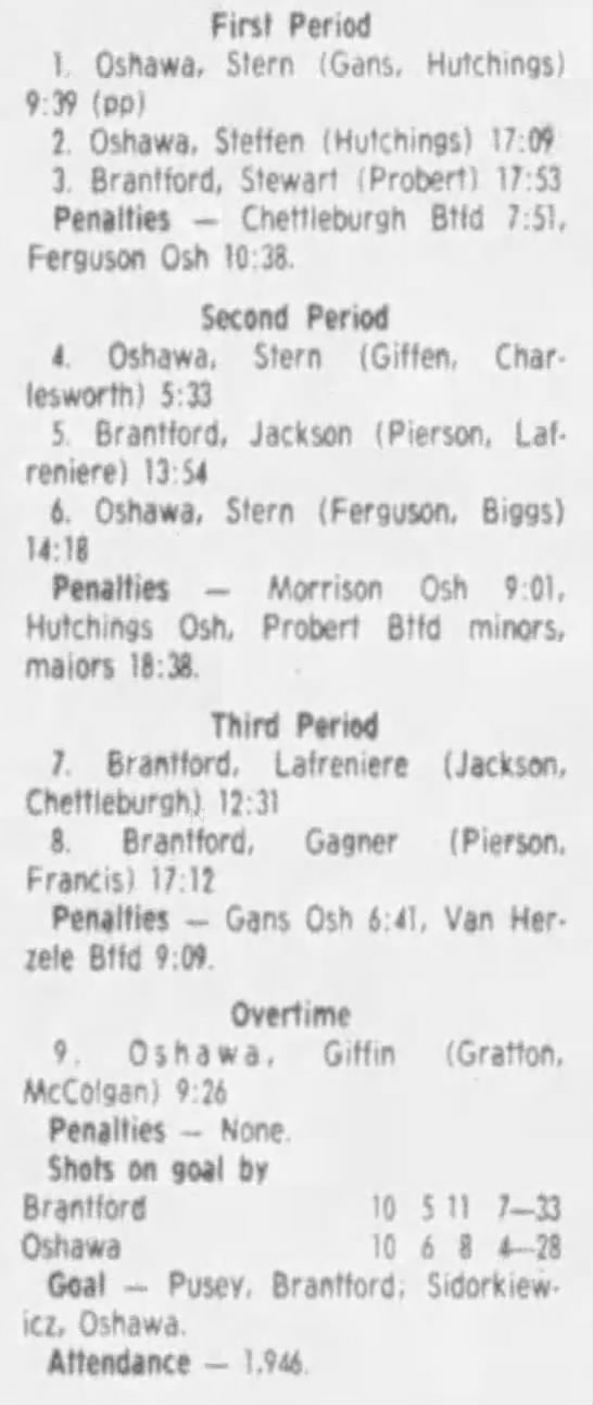 September 30 1983- Brantford @ Oshawa (3-3 Tie)