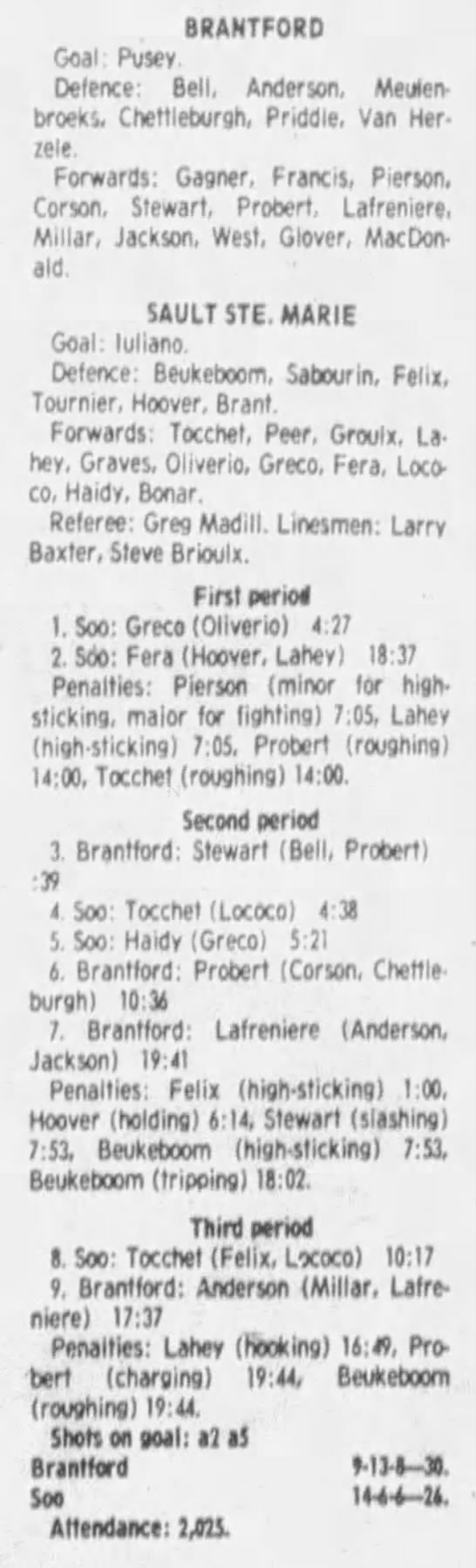 January 27 1984- Brantford @ Soo