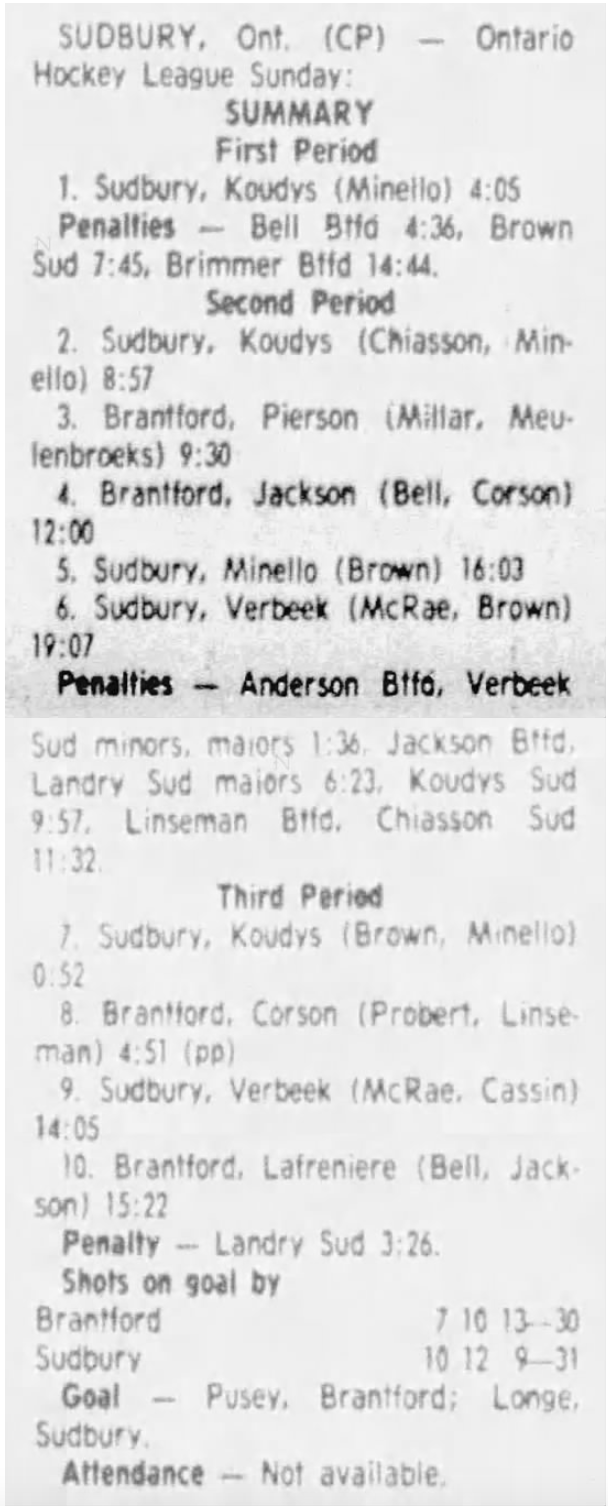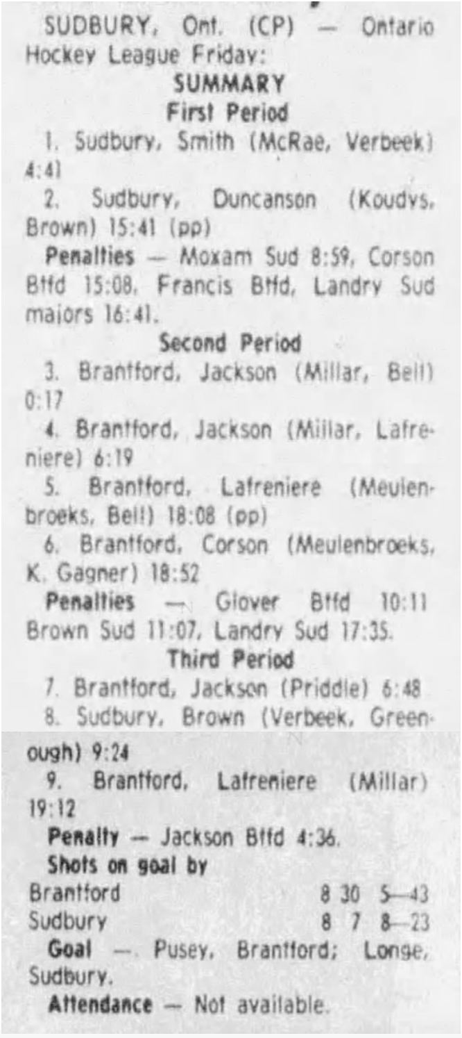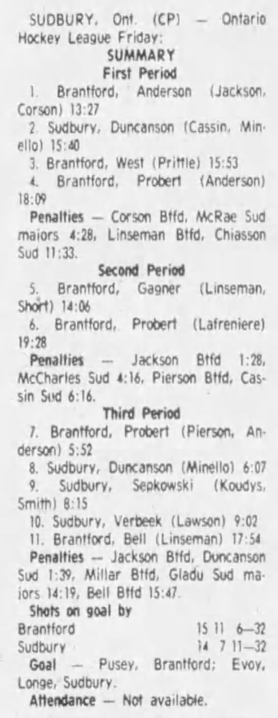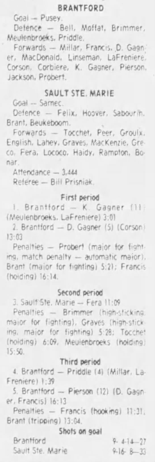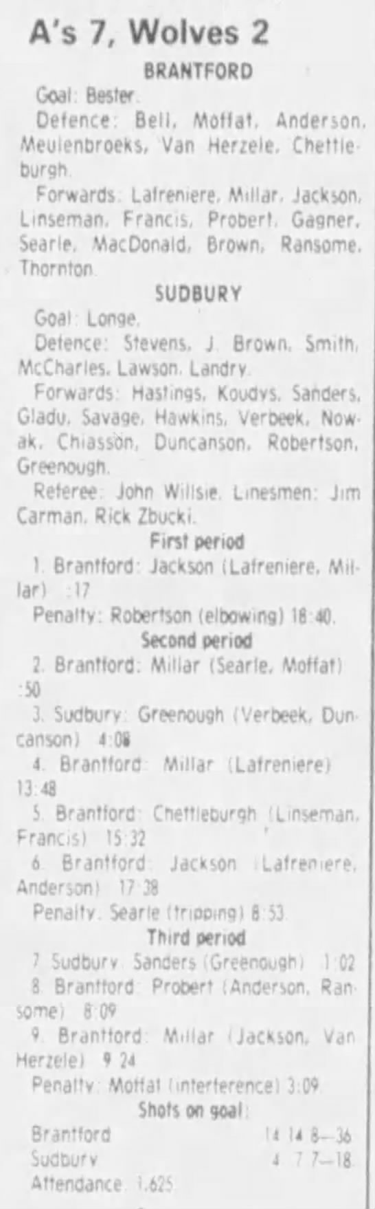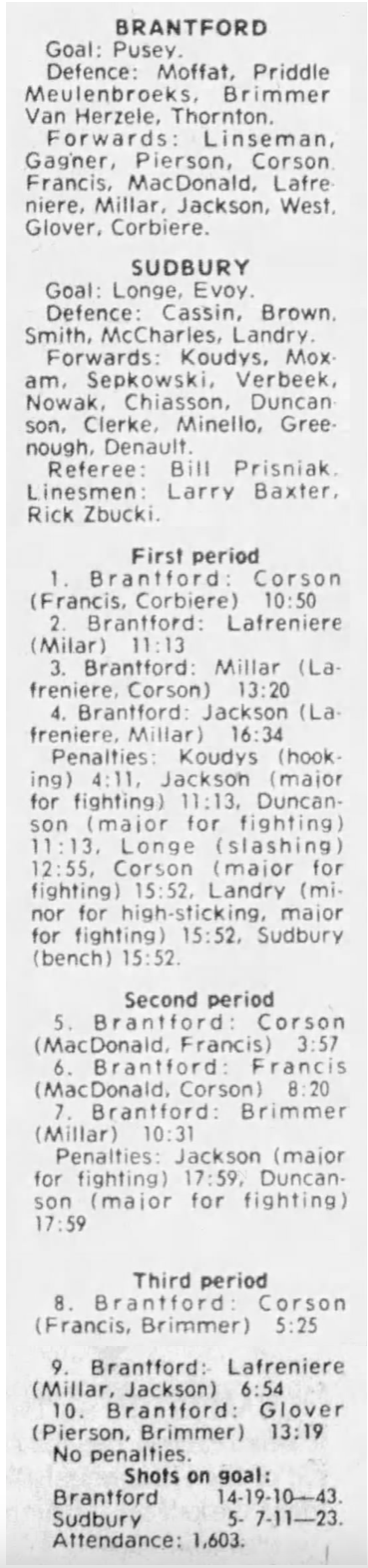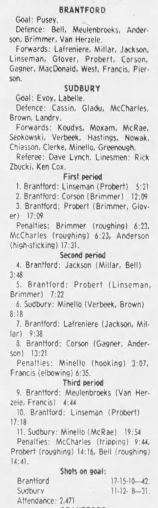 March 9 1984- Brantford @ Sudbury