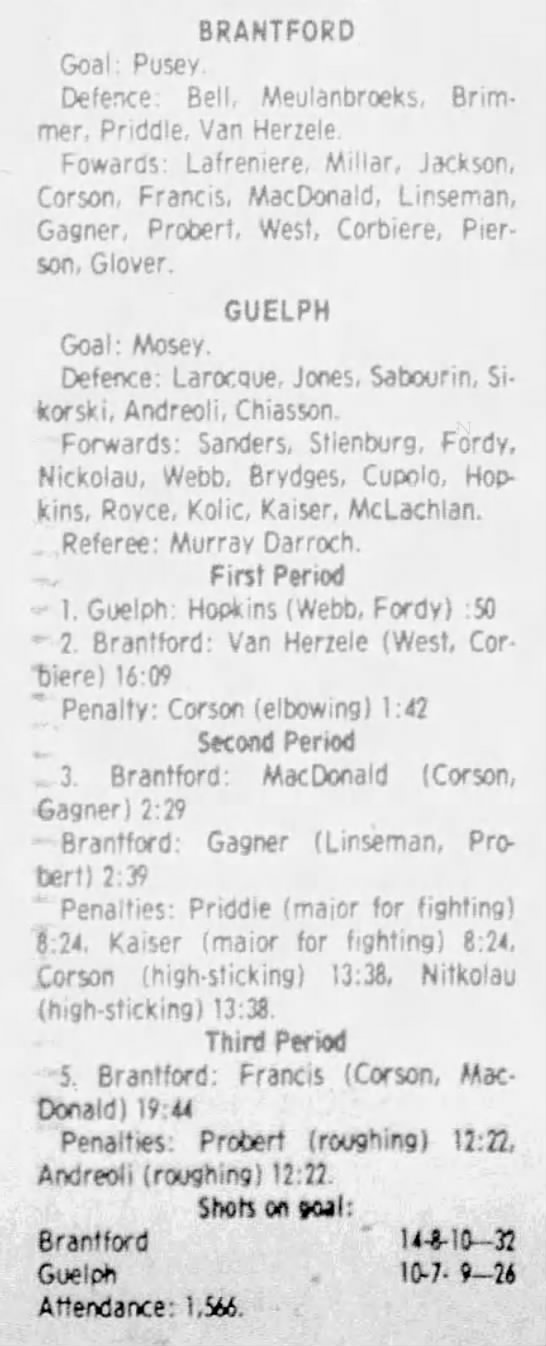 November 4 1983- Brantford @ Guelph