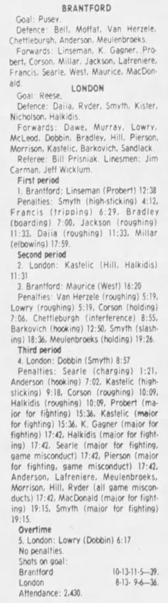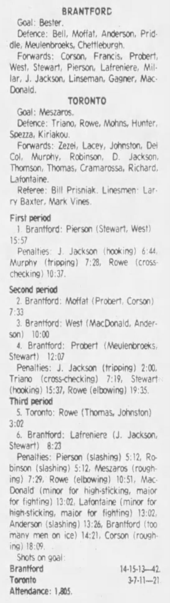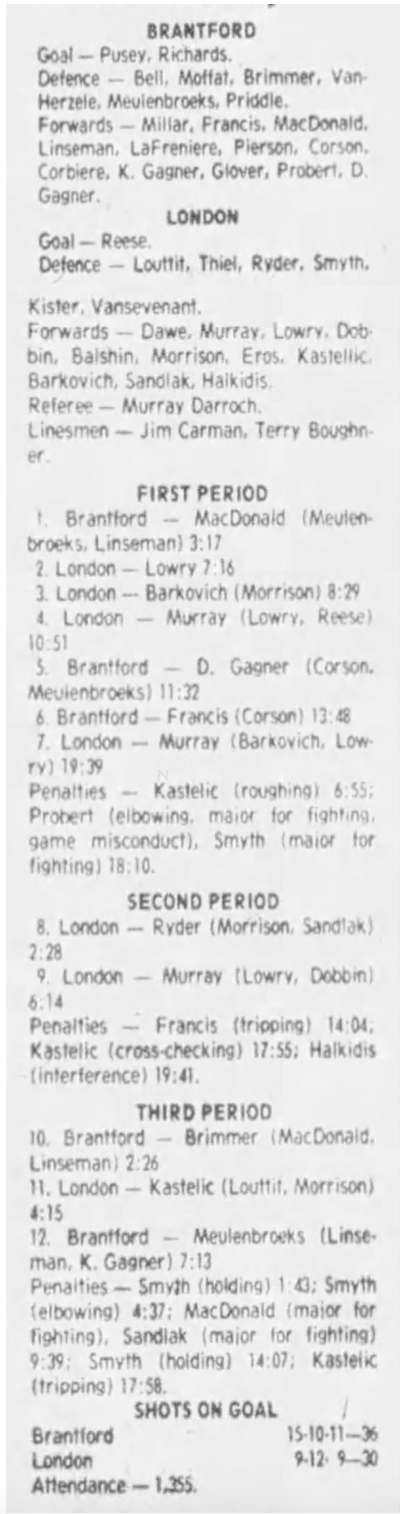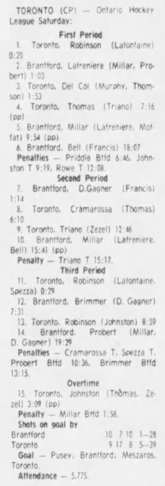 October 20 1983- Toronto @ Brantford (9-6 Brantford)