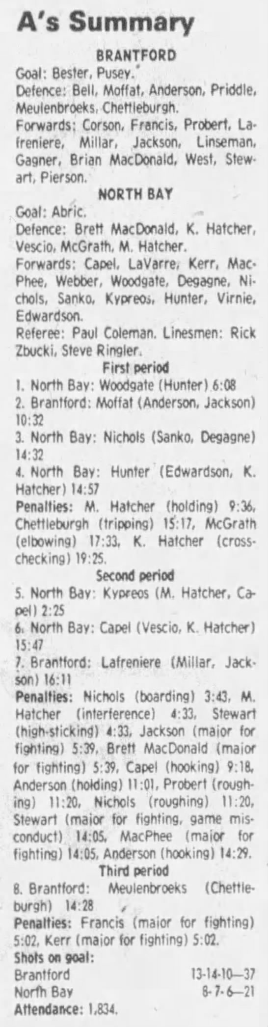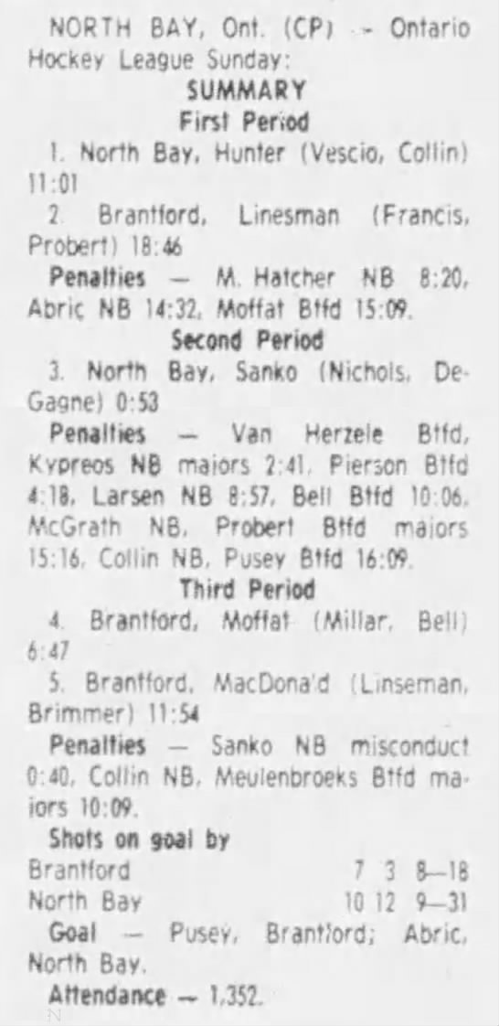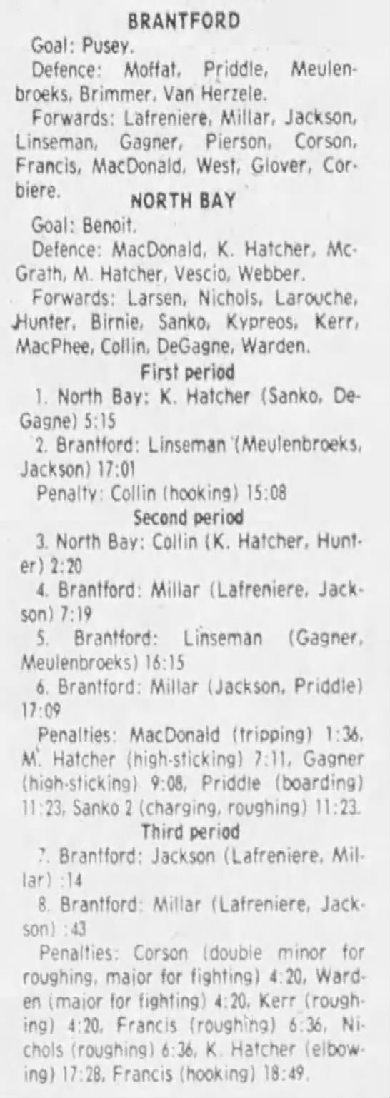 March 8 1984- North Bay @ Brantford