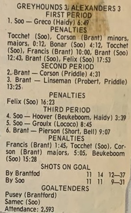 Here are the boxscores from the 1983-84 Brantford Alexanders season. Most boxscores from this season are here (73/76 boxscores). If you have any of the games that are missing, please send them my way.